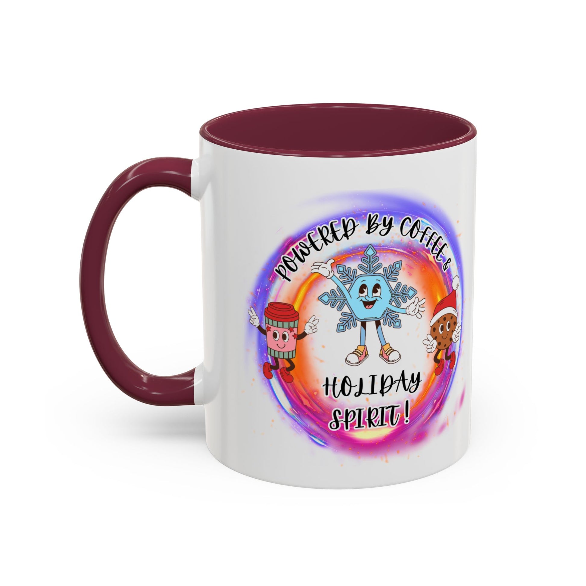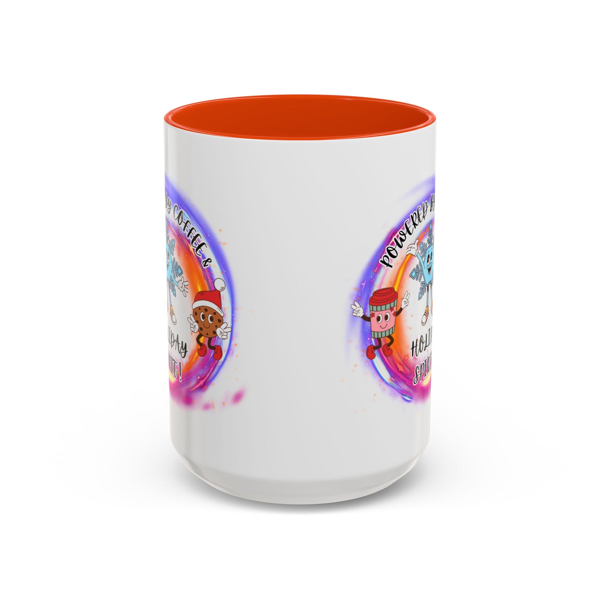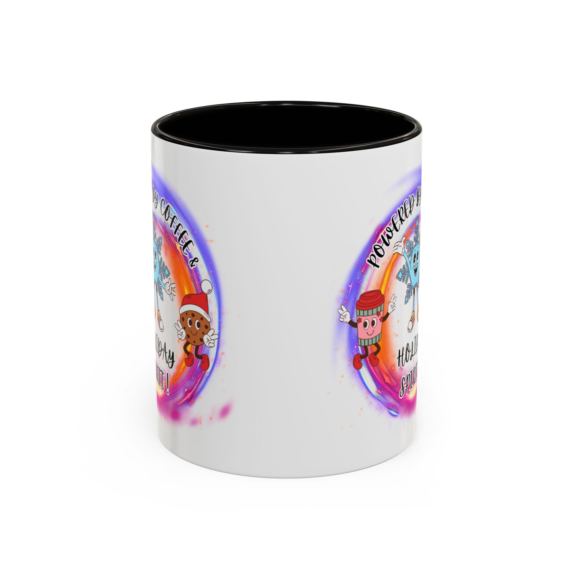 "Powered By Coffee and Christmas Spirit" Two Tone Accent Mugs (11oz, 15oz)