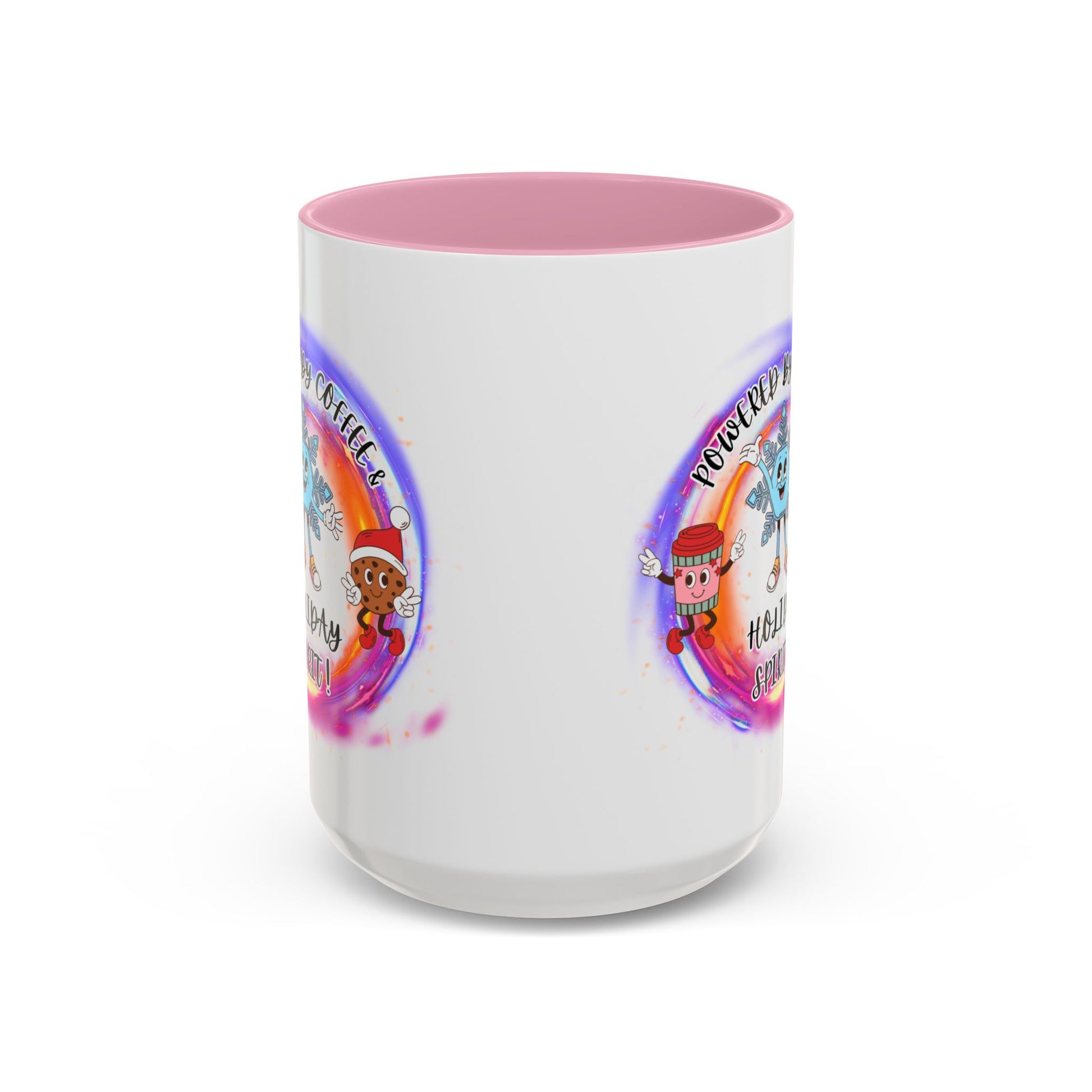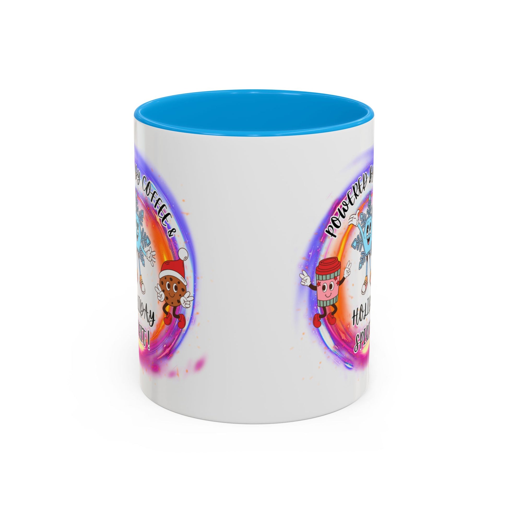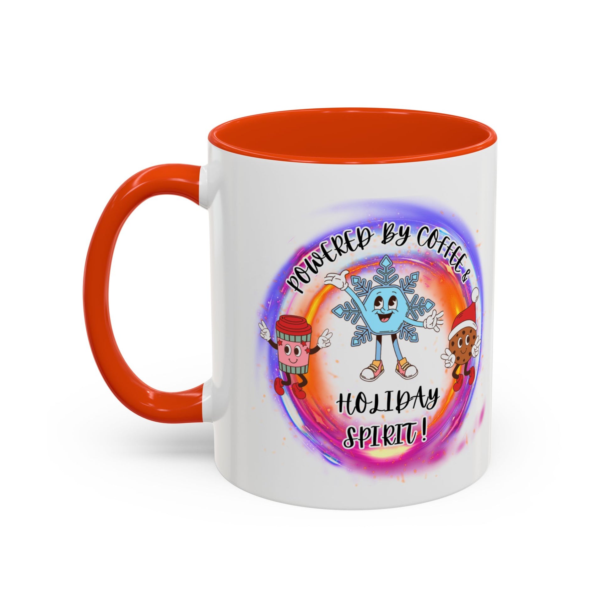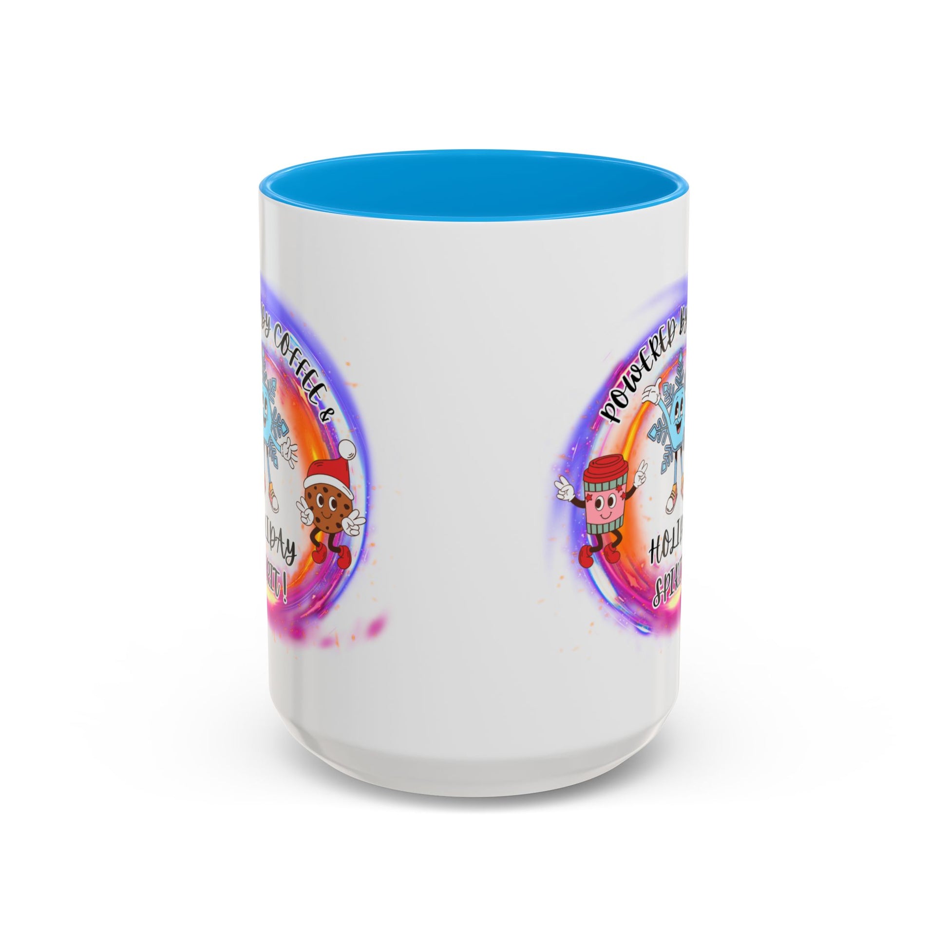 "Powered By Coffee and Christmas Spirit" Two Tone Accent Mugs (11oz, 15oz)