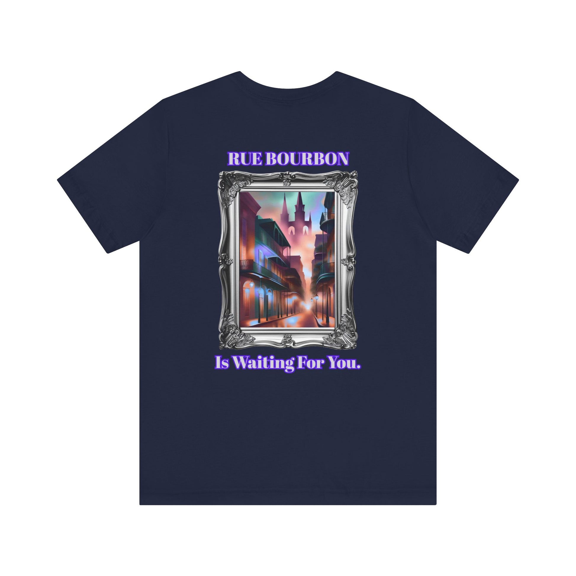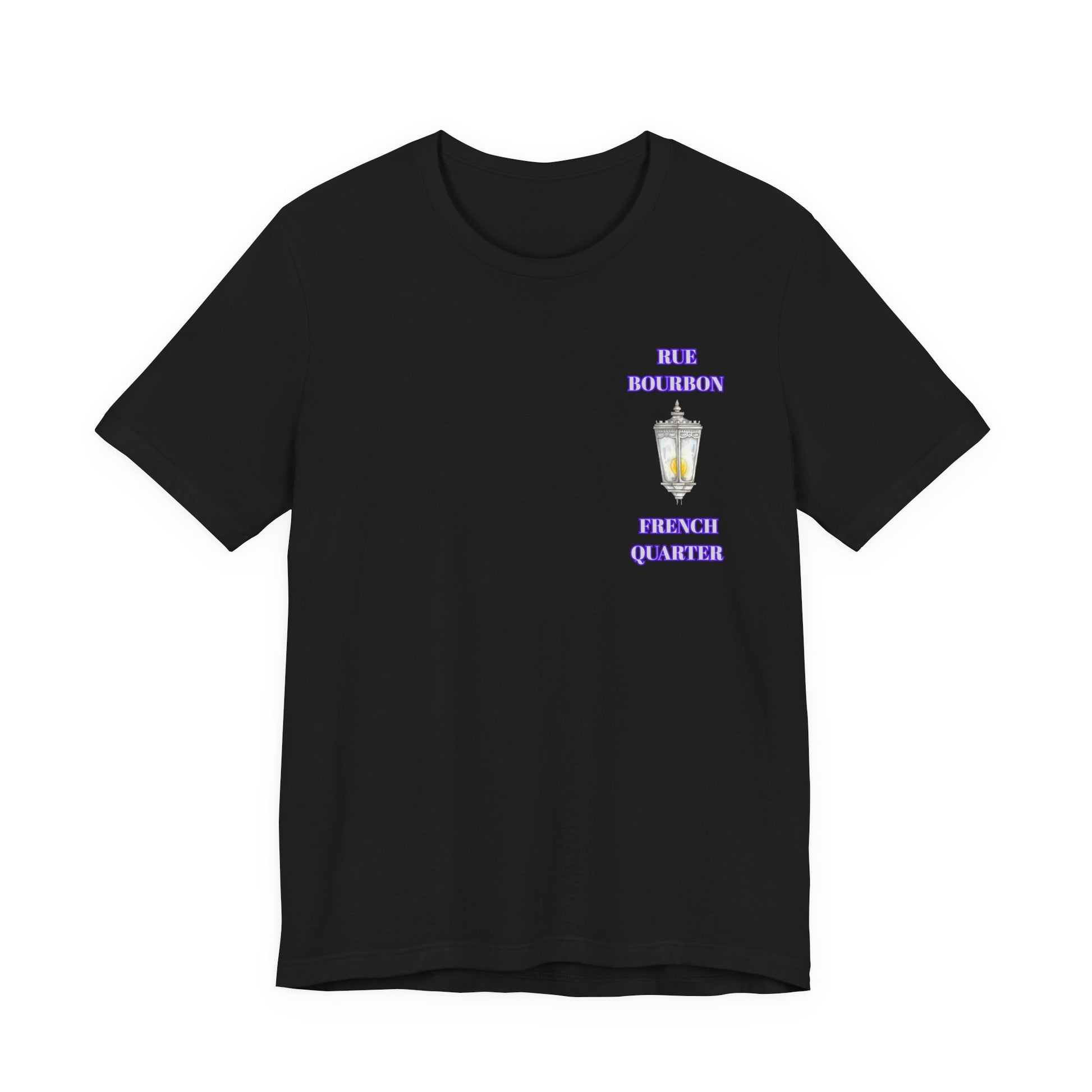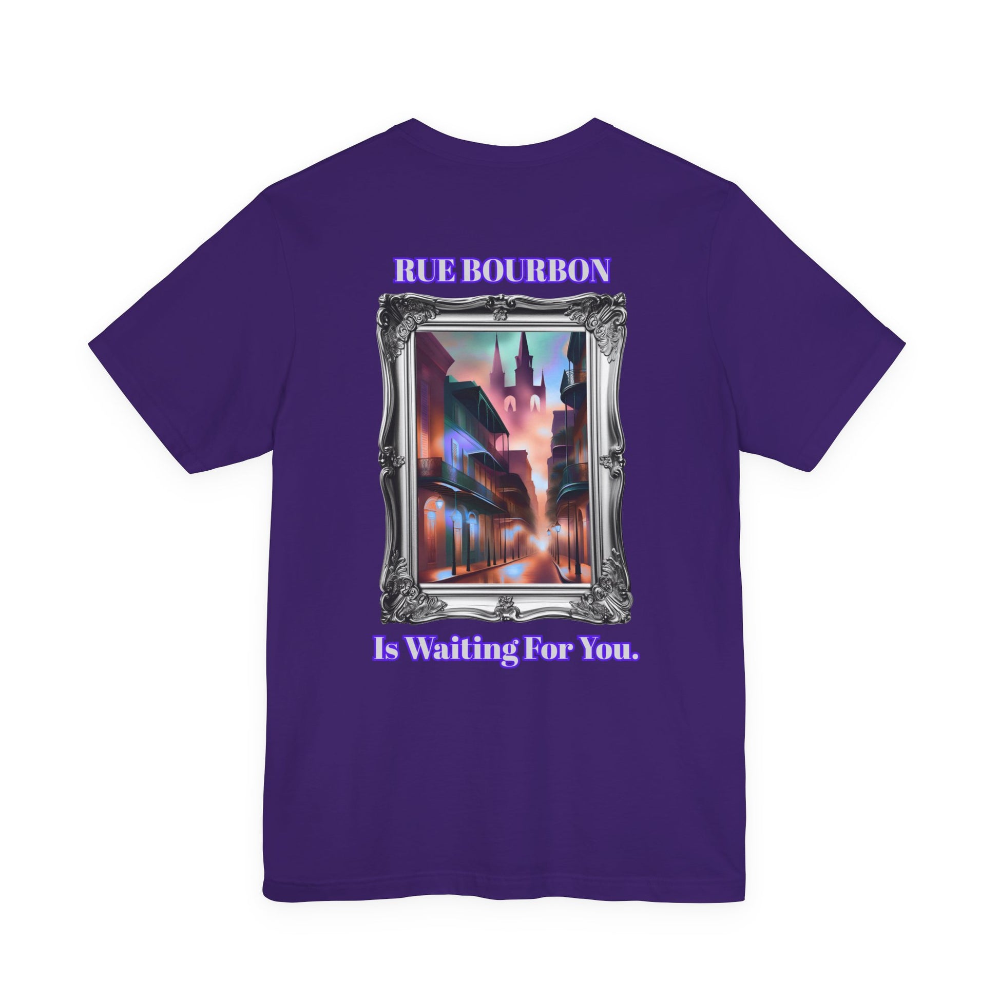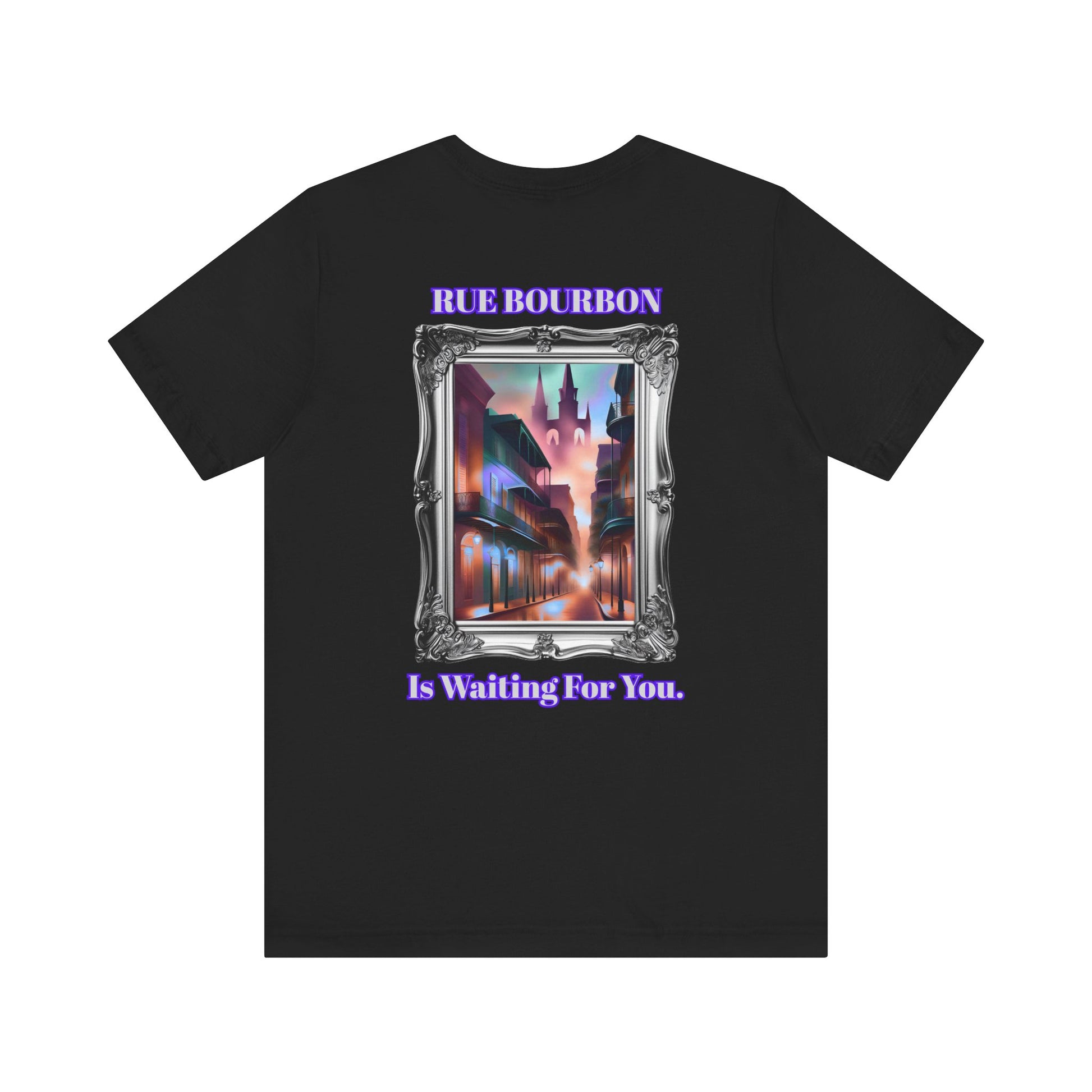 "Rue Bourbon" Our Vibrant Bourbon Street Unisex T-Shirt. Great for Halloween or Mardi Gras, Or Casual Wear!
