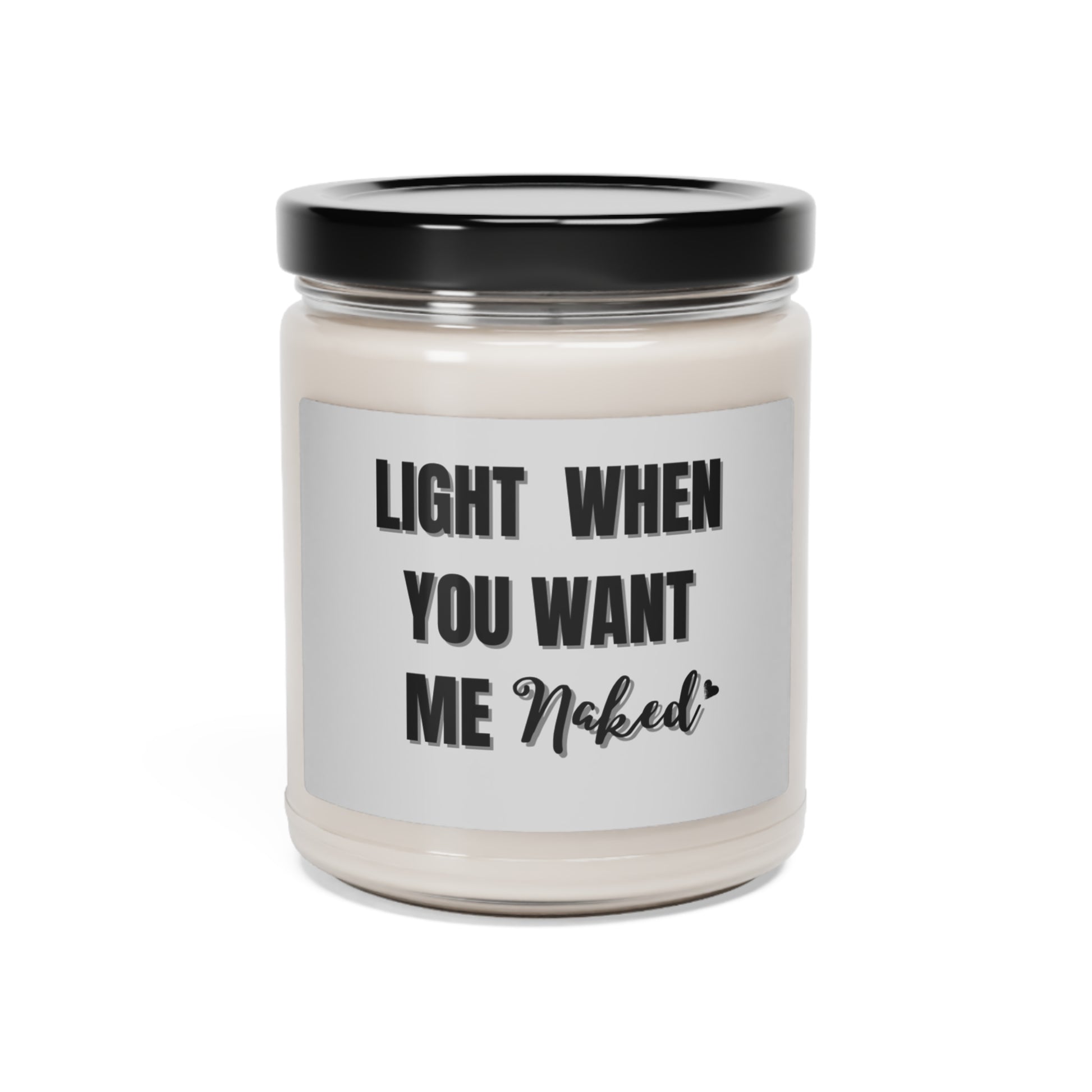 "Light When You Want Me Naked" Gray Label Design with Heart, 9 oz Scented Soy Candle