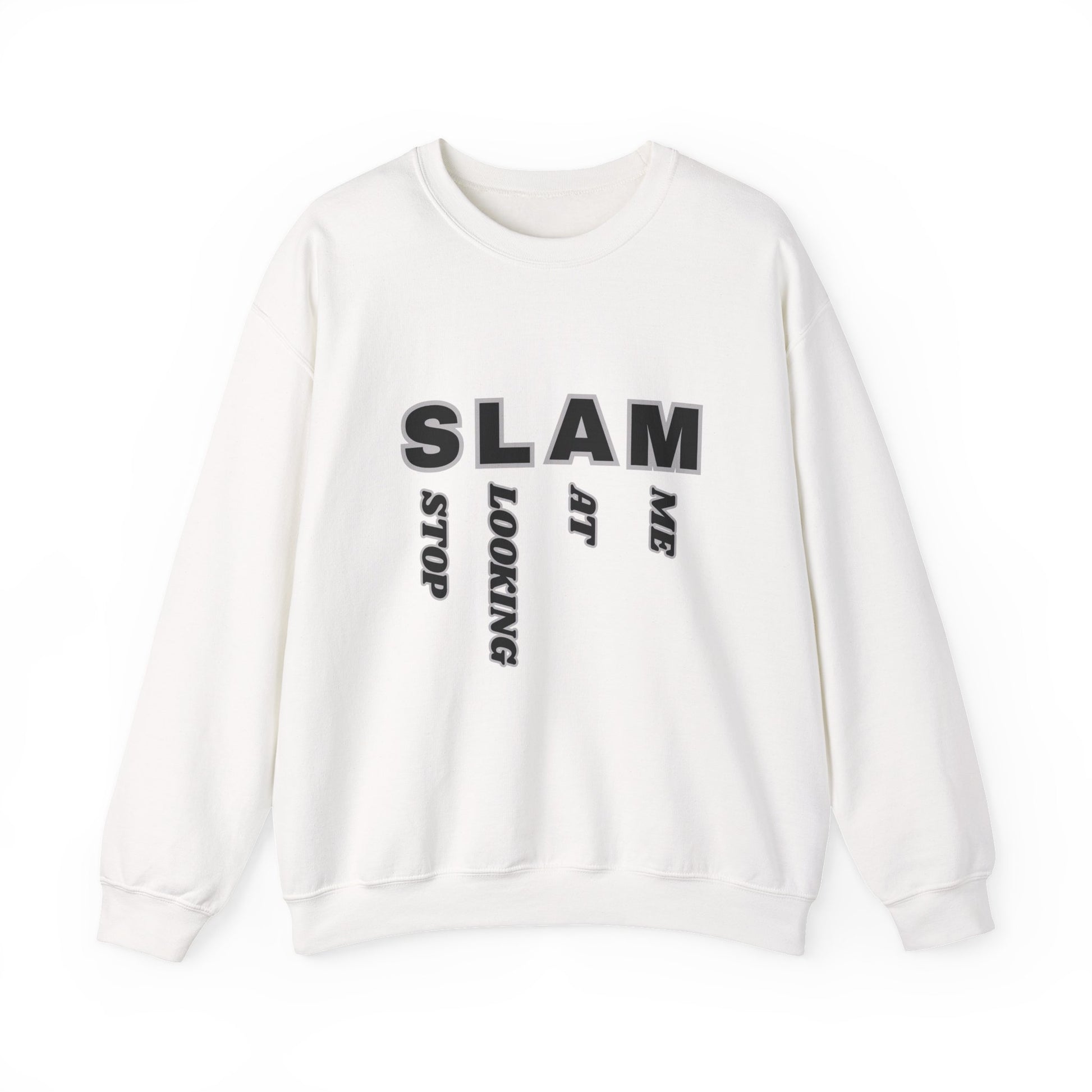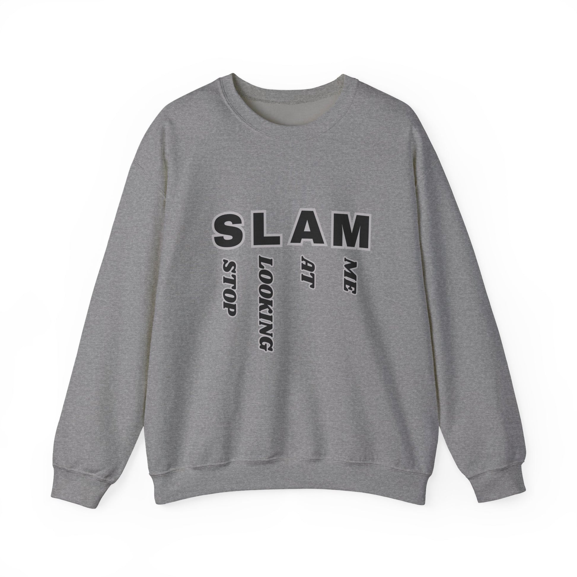 "SLAM" Stop Looking At Me,Trendy Unisex Crewneck Sweatshirt. Wear this and they definitely will be looking!