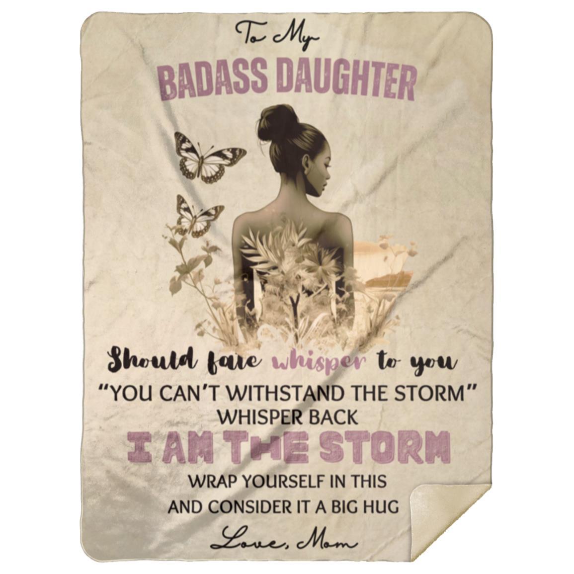 "TO MY BADASS DAUGHTER" - Butterfly Meadow Design, 60 in x 80 in Premium Sherpa Blanket