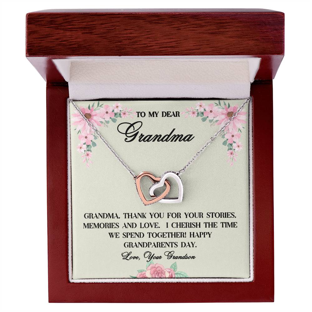 My Dear Grandma. Grandma, thank you for your stories, memories and love. I cherish the time we spend togather! Happy Grandparents Day. Love, Your Grandson.