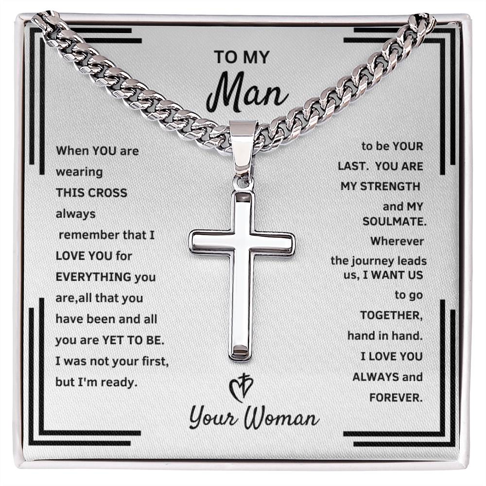 "He Will Tear Up When He See's This Beautiful Artisan Cross and Cuban Link Necklace." To My Man - Artisan Cross and Cuban Link Necklace.