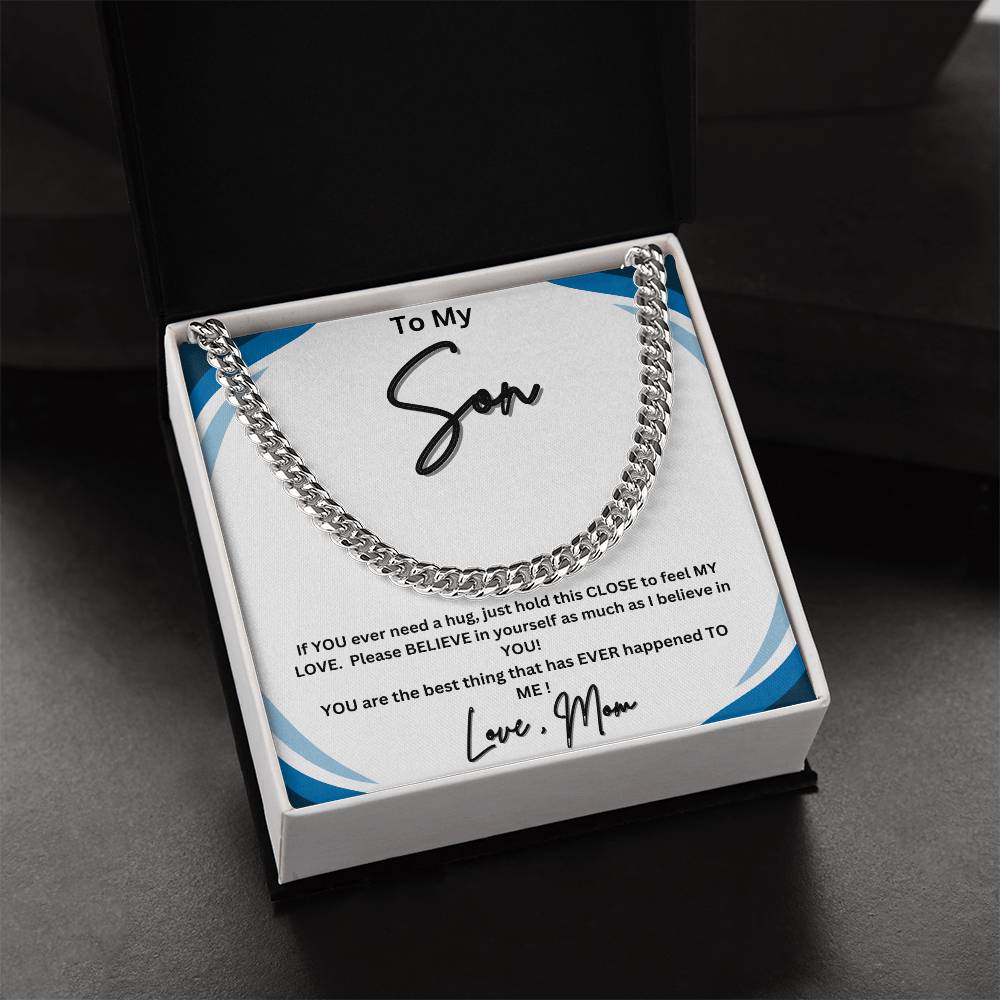 His heart melted when he read this! "To My Son, Love Mom"- Cuban Link Necklace