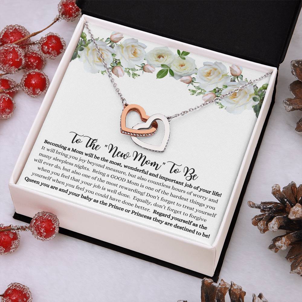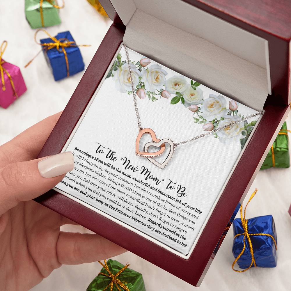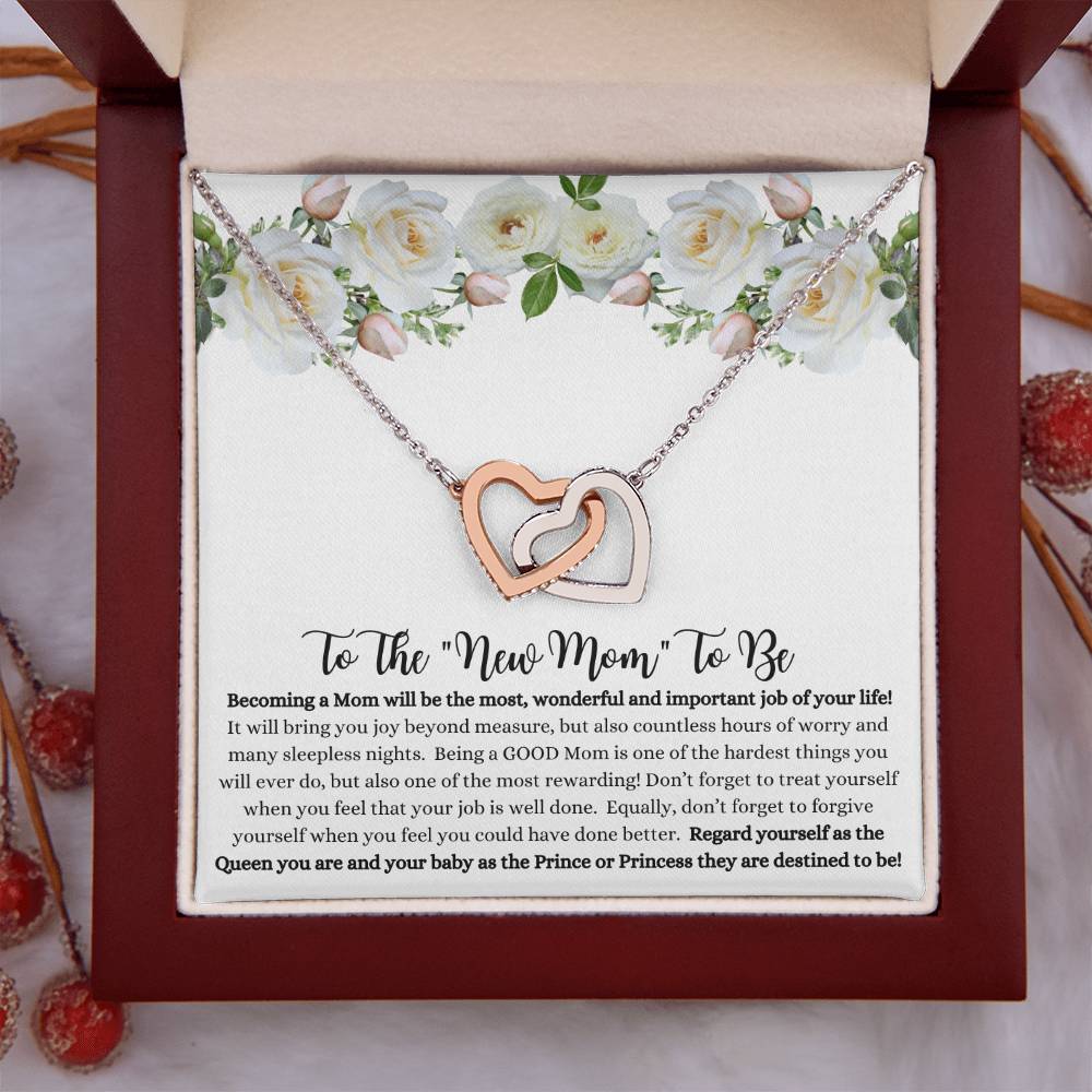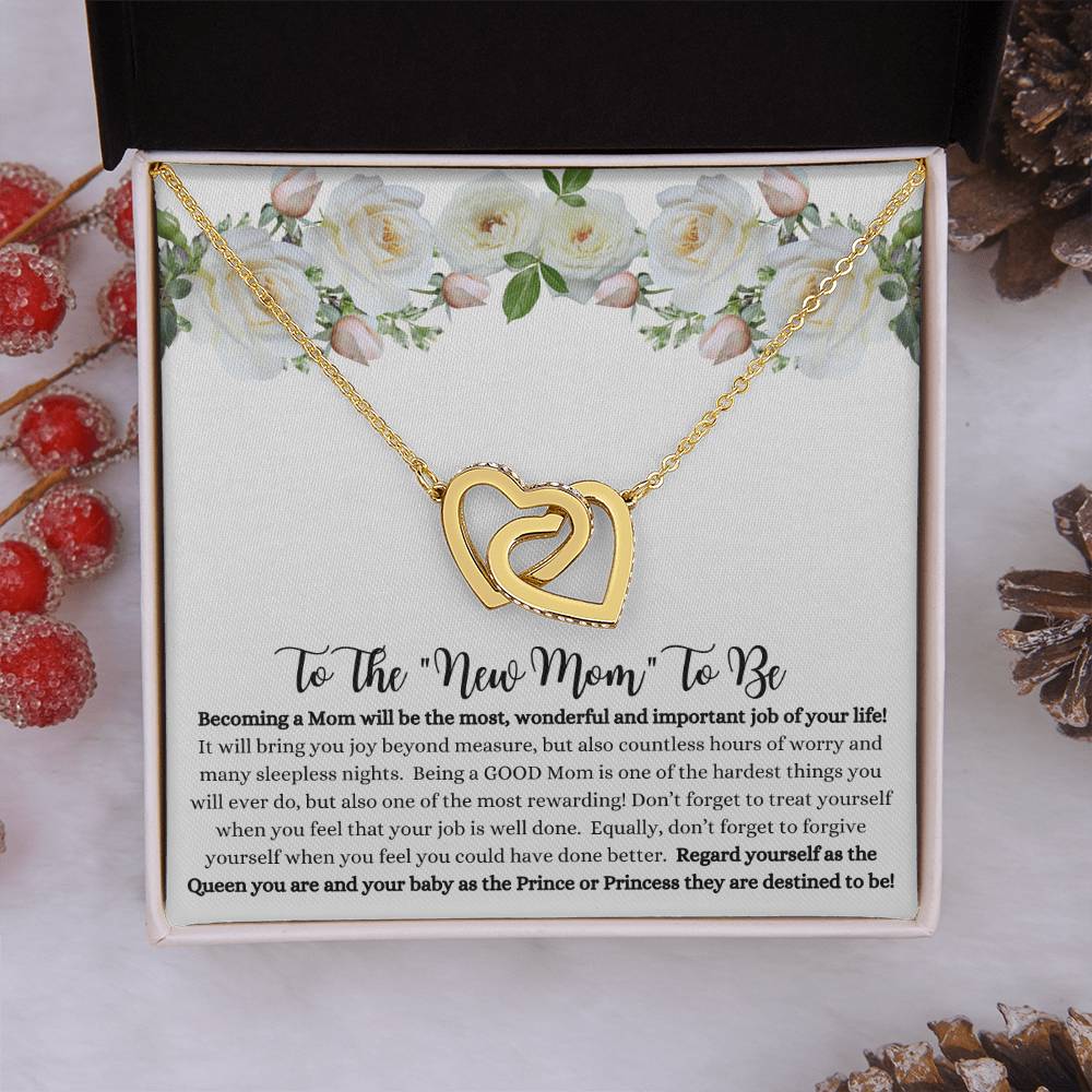 She will tear- up when she opens the box and reads this! "To The New Mom To Be "- Interlocking Hearts Necklace