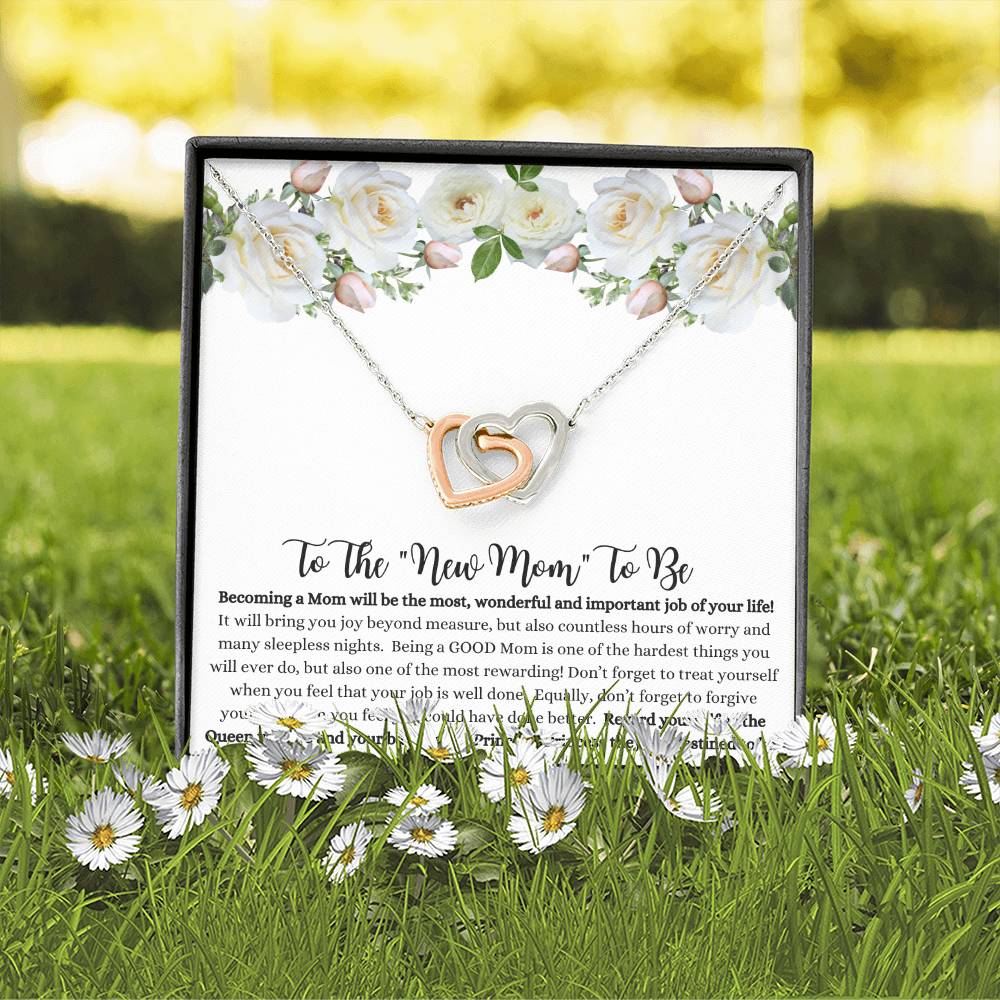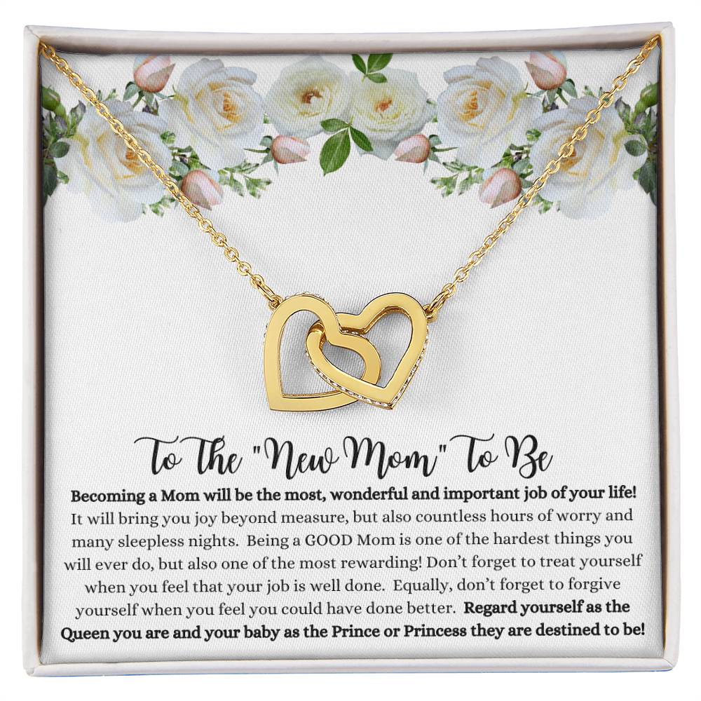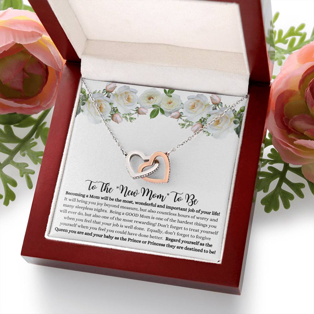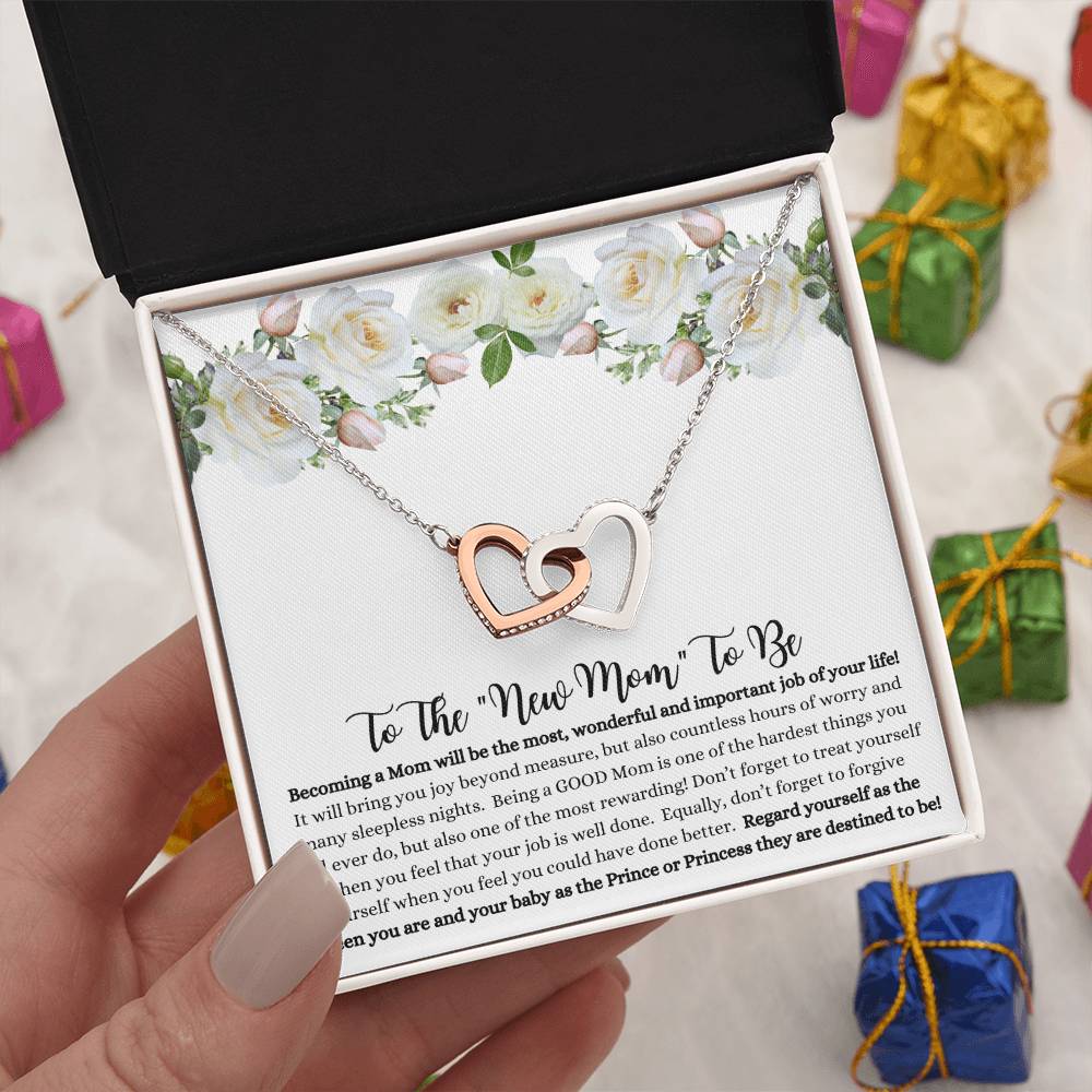 She will tear- up when she opens the box and reads this! "To The New Mom To Be "- Interlocking Hearts Necklace