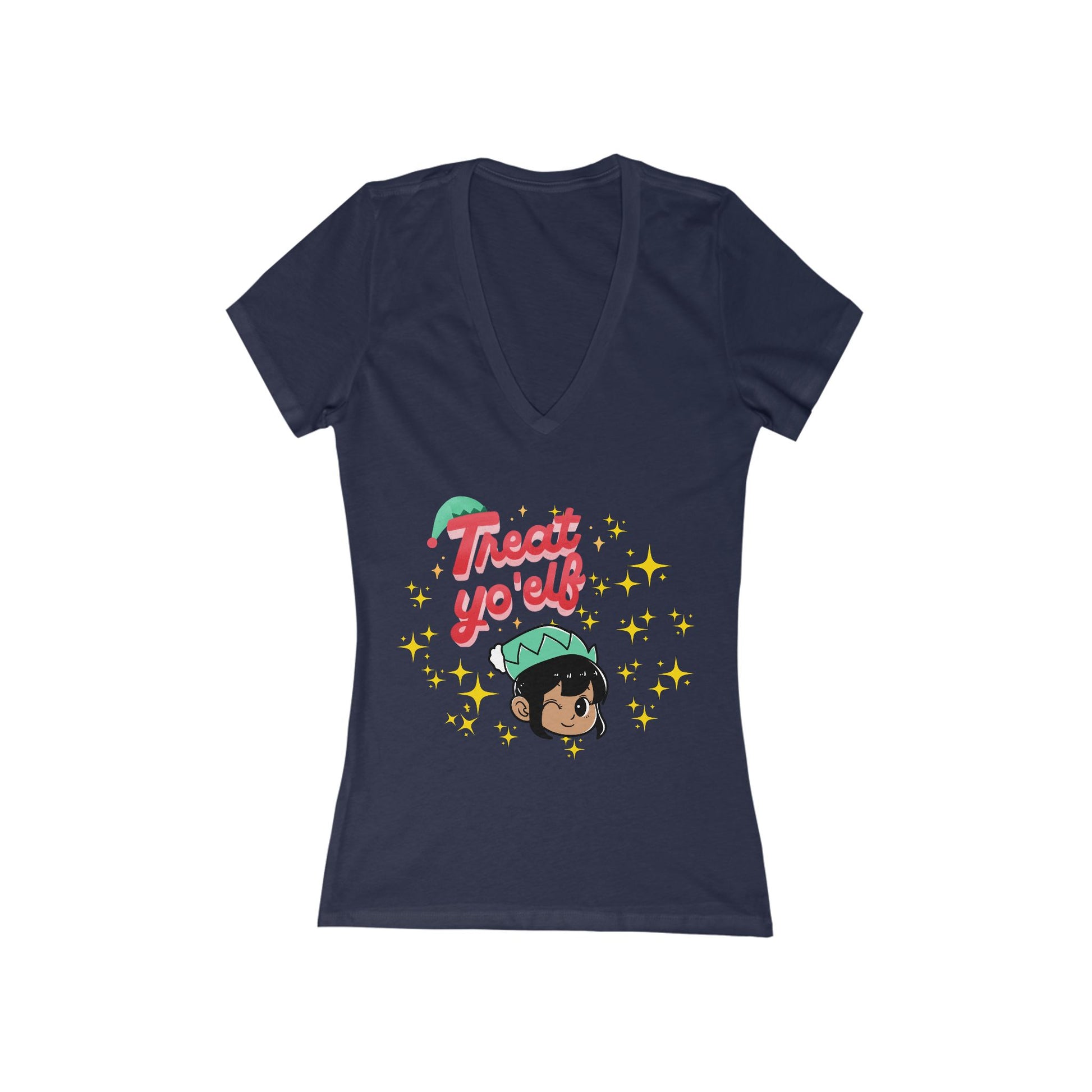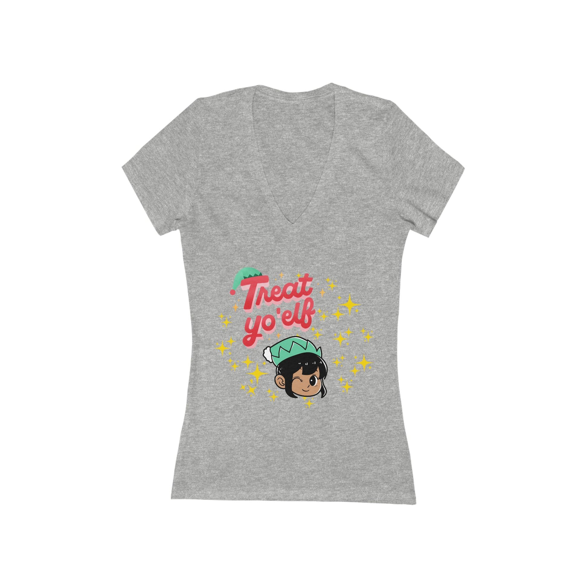 Treat Yo'Elf Christmas V-Neck Tee — Cute Elf Graphic Women's Tee