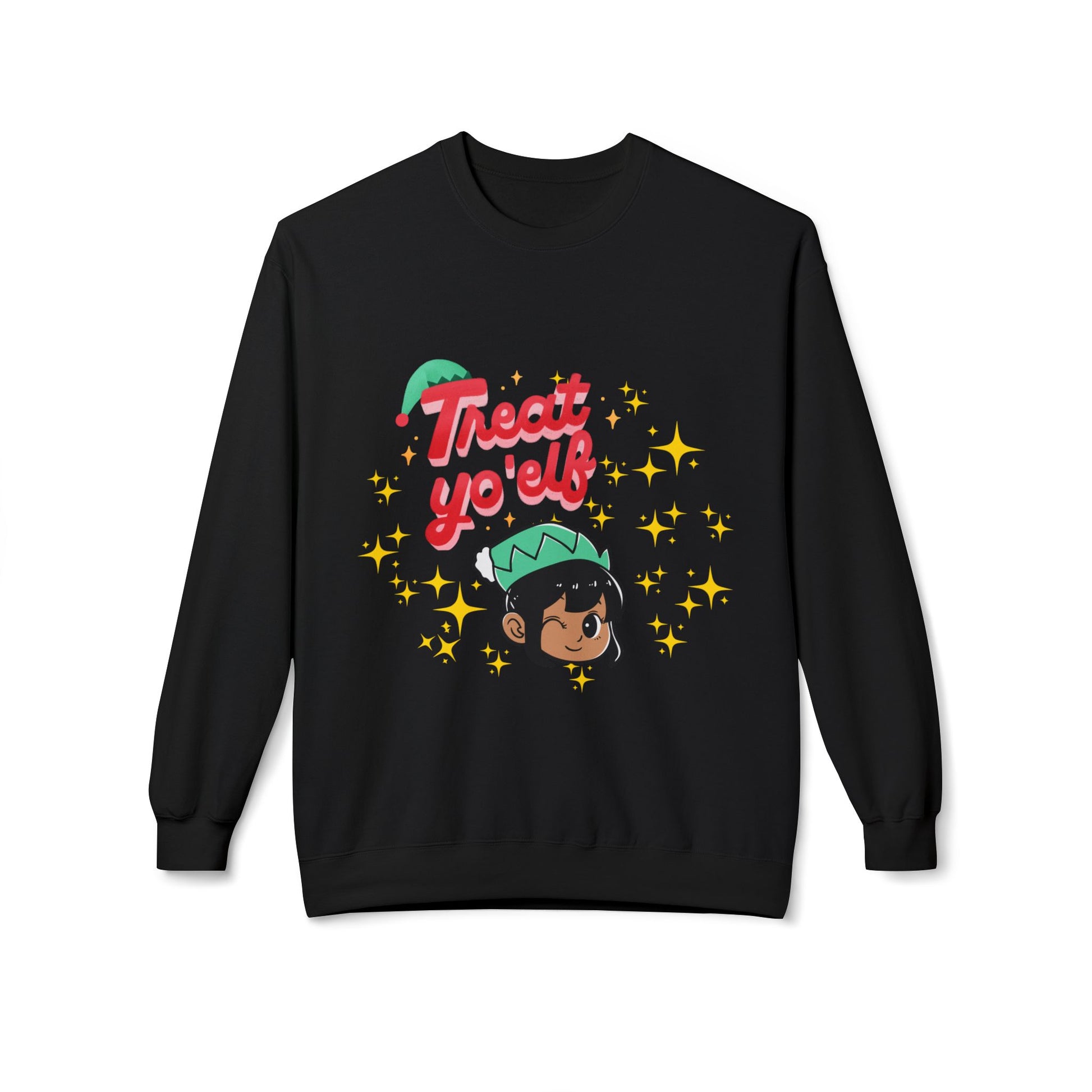 "Treat Yo'Elf" — Cute Elf Holiday Unisex Crewneck Sweatshirt