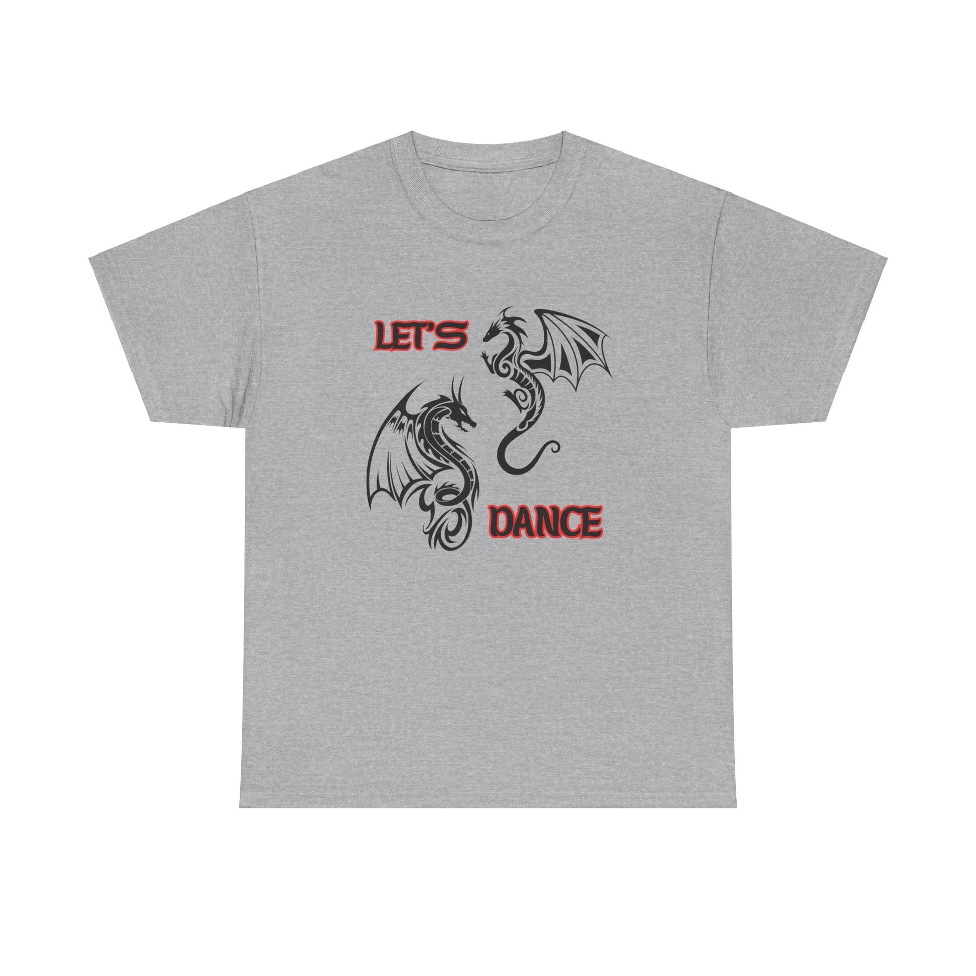 "Let's Dance" Unisex Heavy Cotton Tee, Black/Red Text