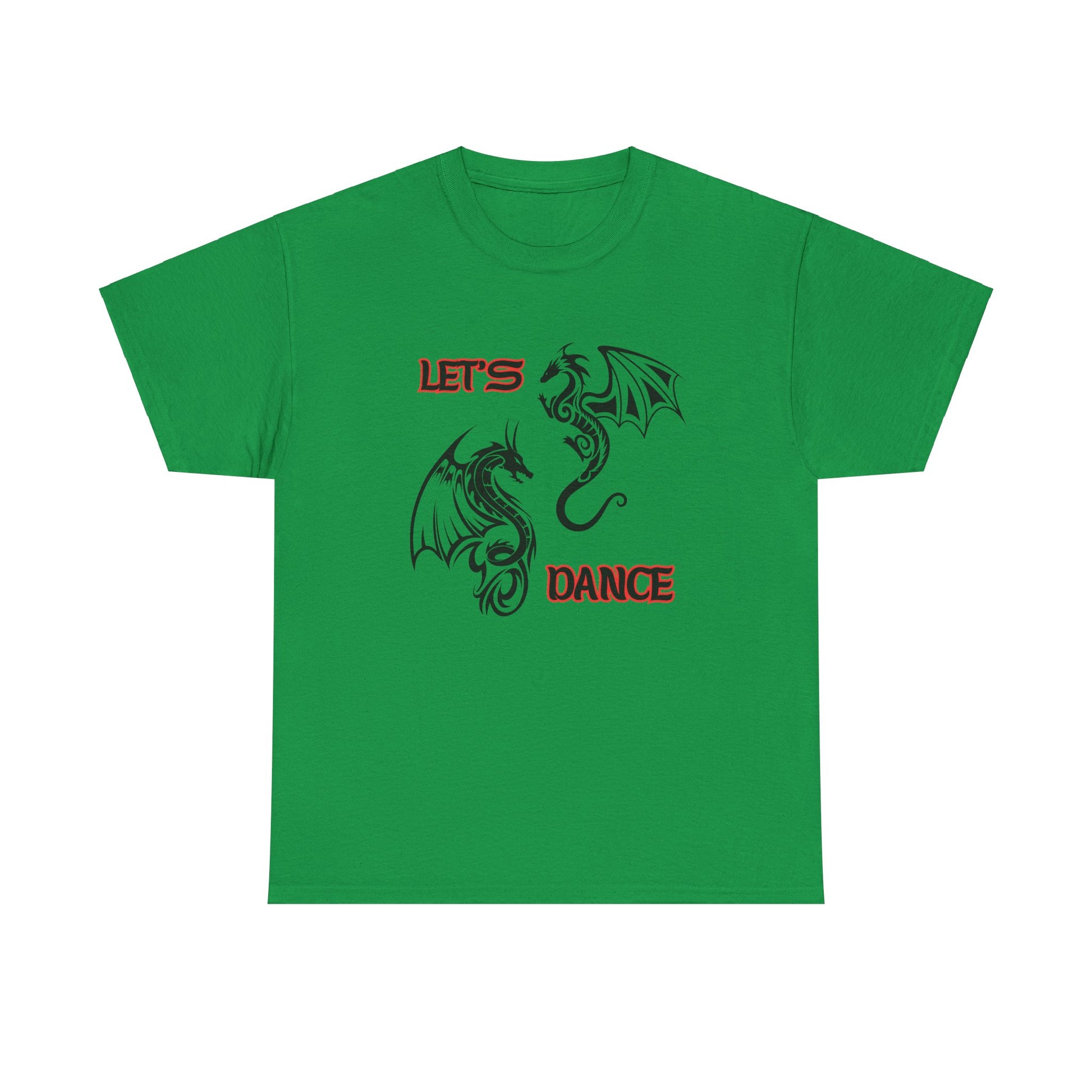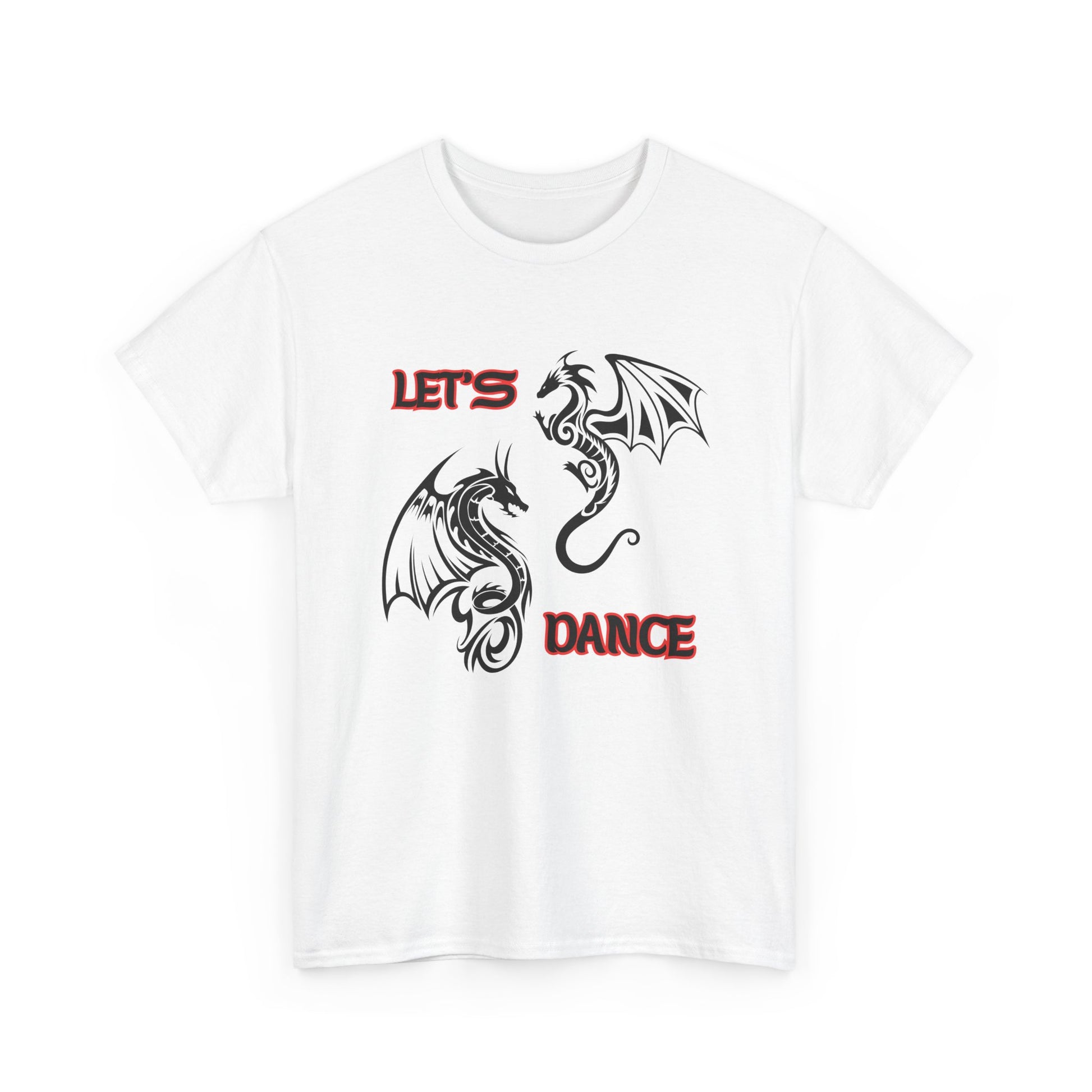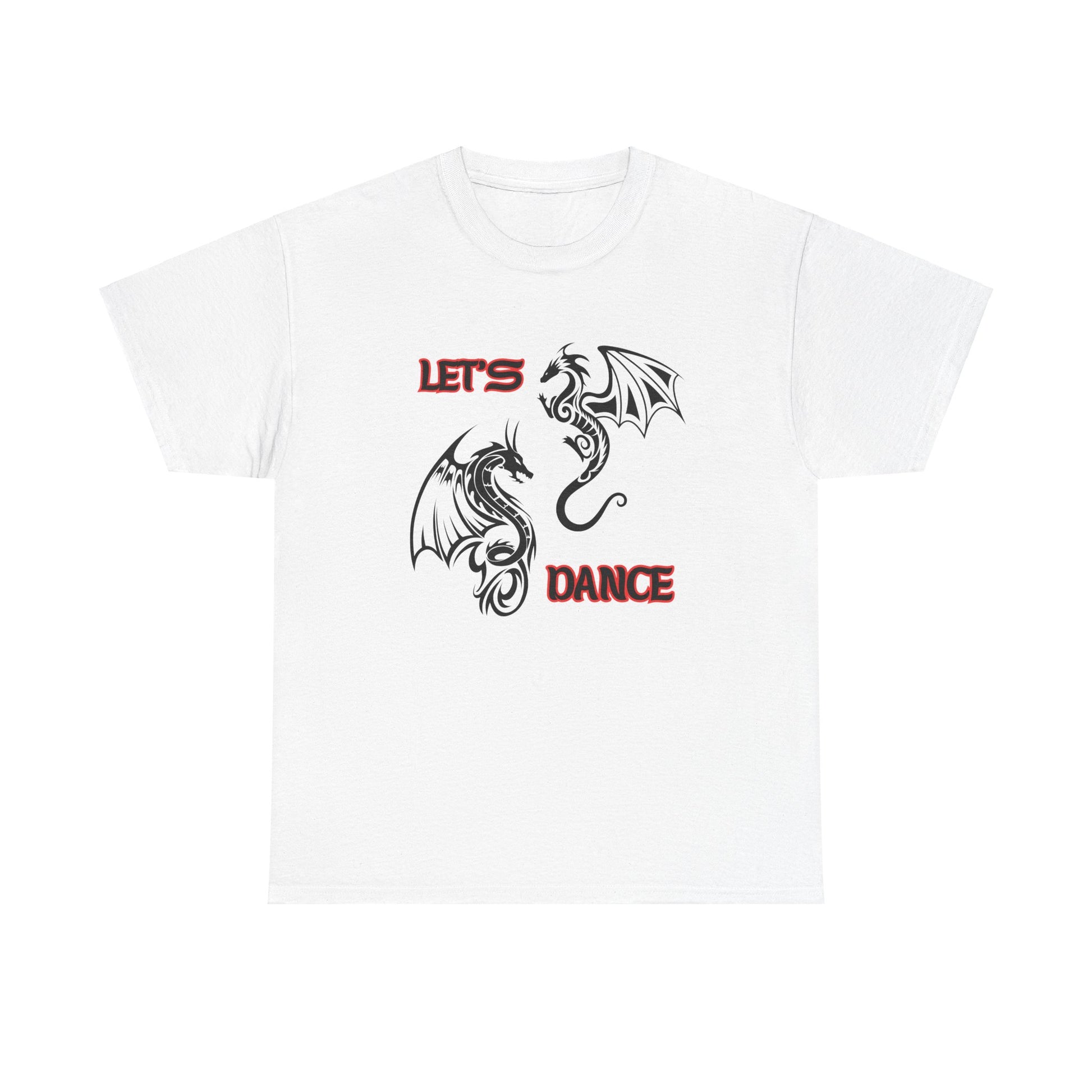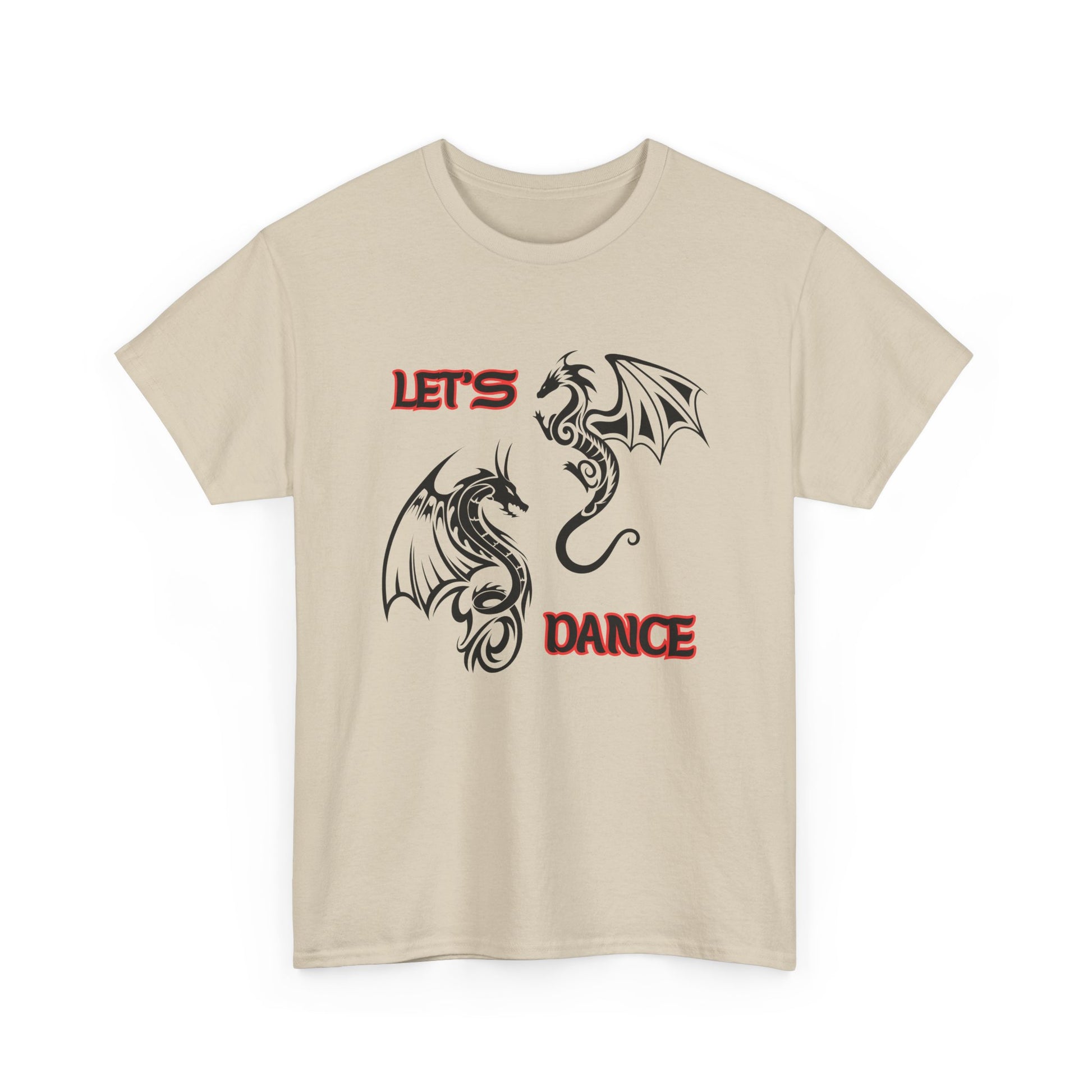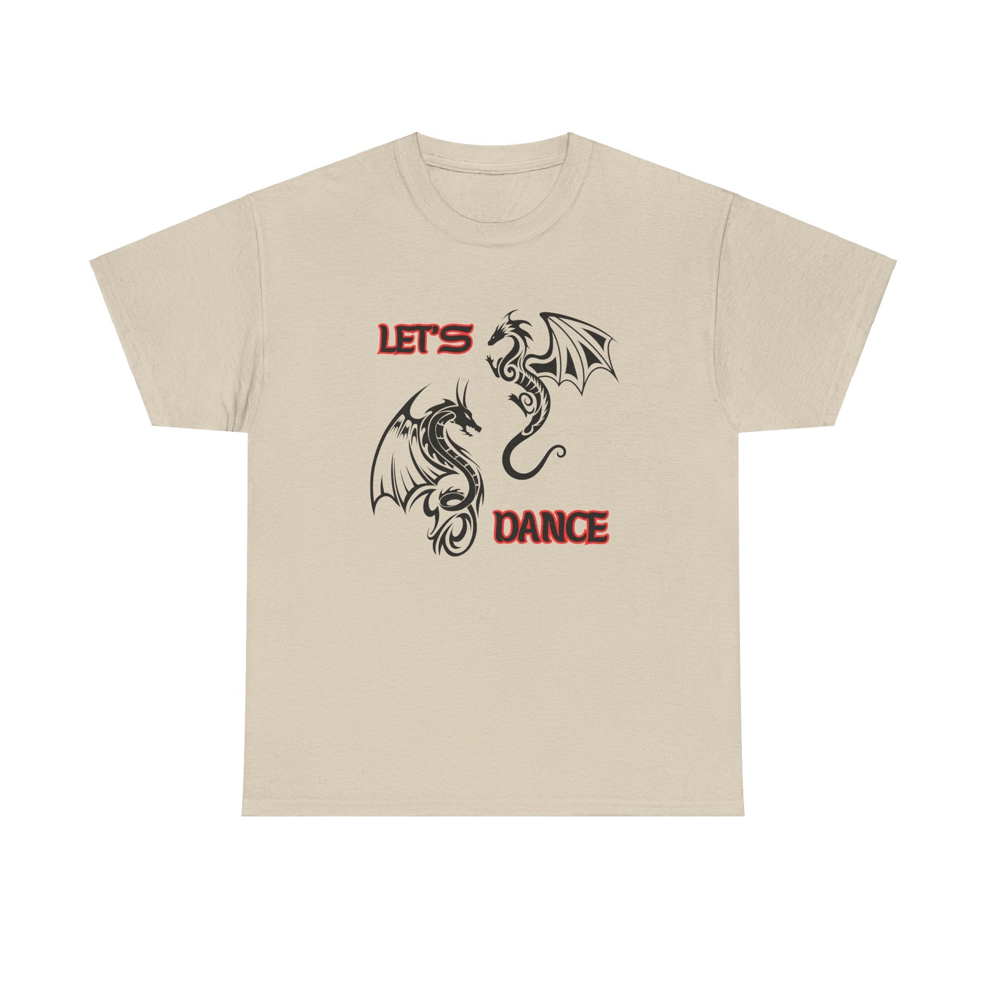 Get our "Let's Dance" custom designed, Unisex short sleeve T-shirt for the dragon lover in you, a friend or family member! The unisex heavy cotton tee is the basic staple of any wardrobe. The specially spun fibers provide a smooth surface for premium printing vividity and sharpness. No side seams mean there are no itchy interruptions under the arms. The shoulders have tape for improved durability.