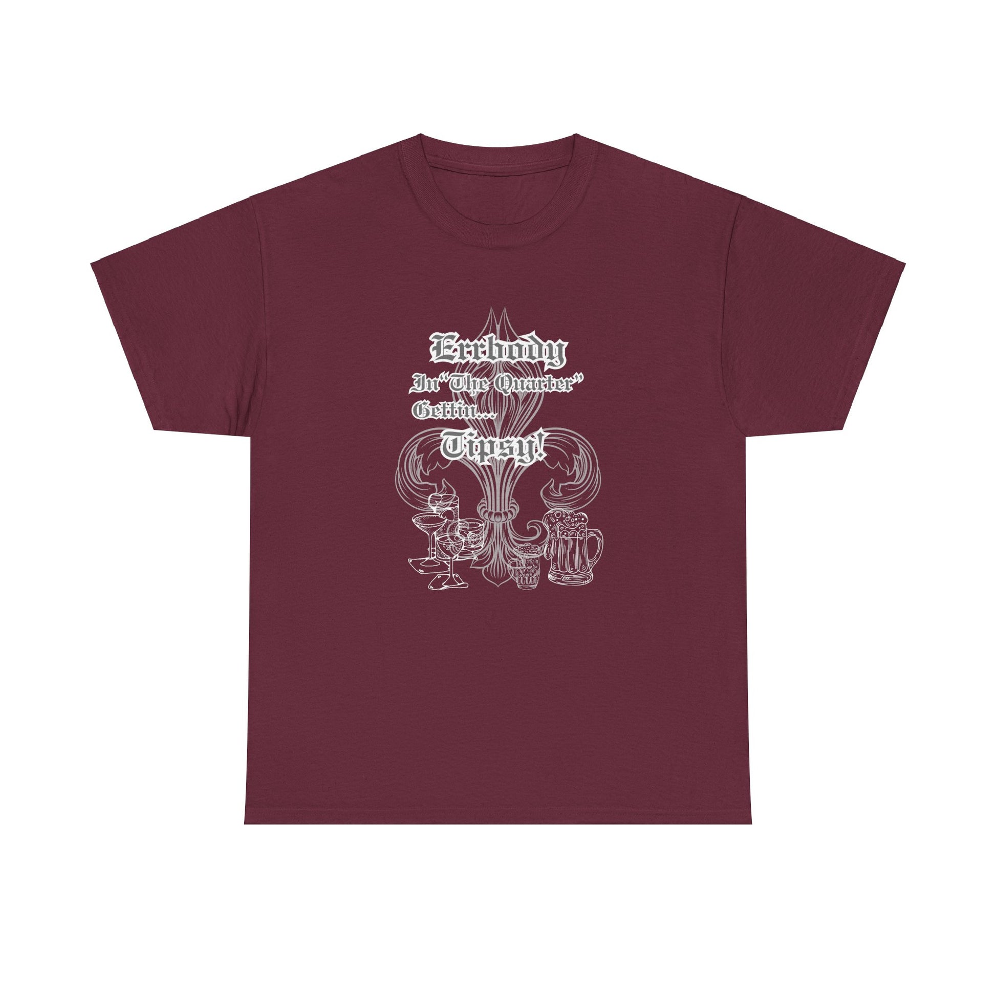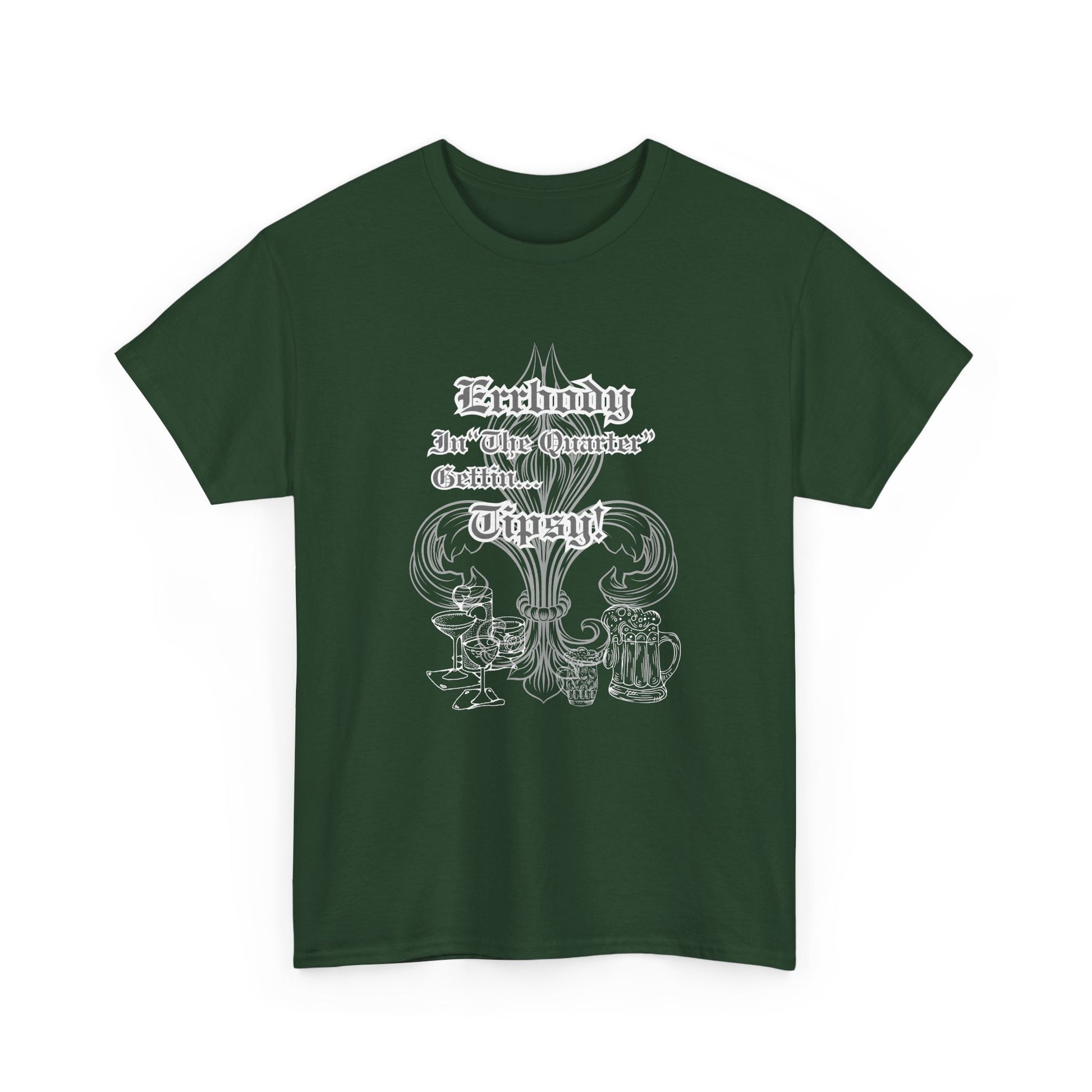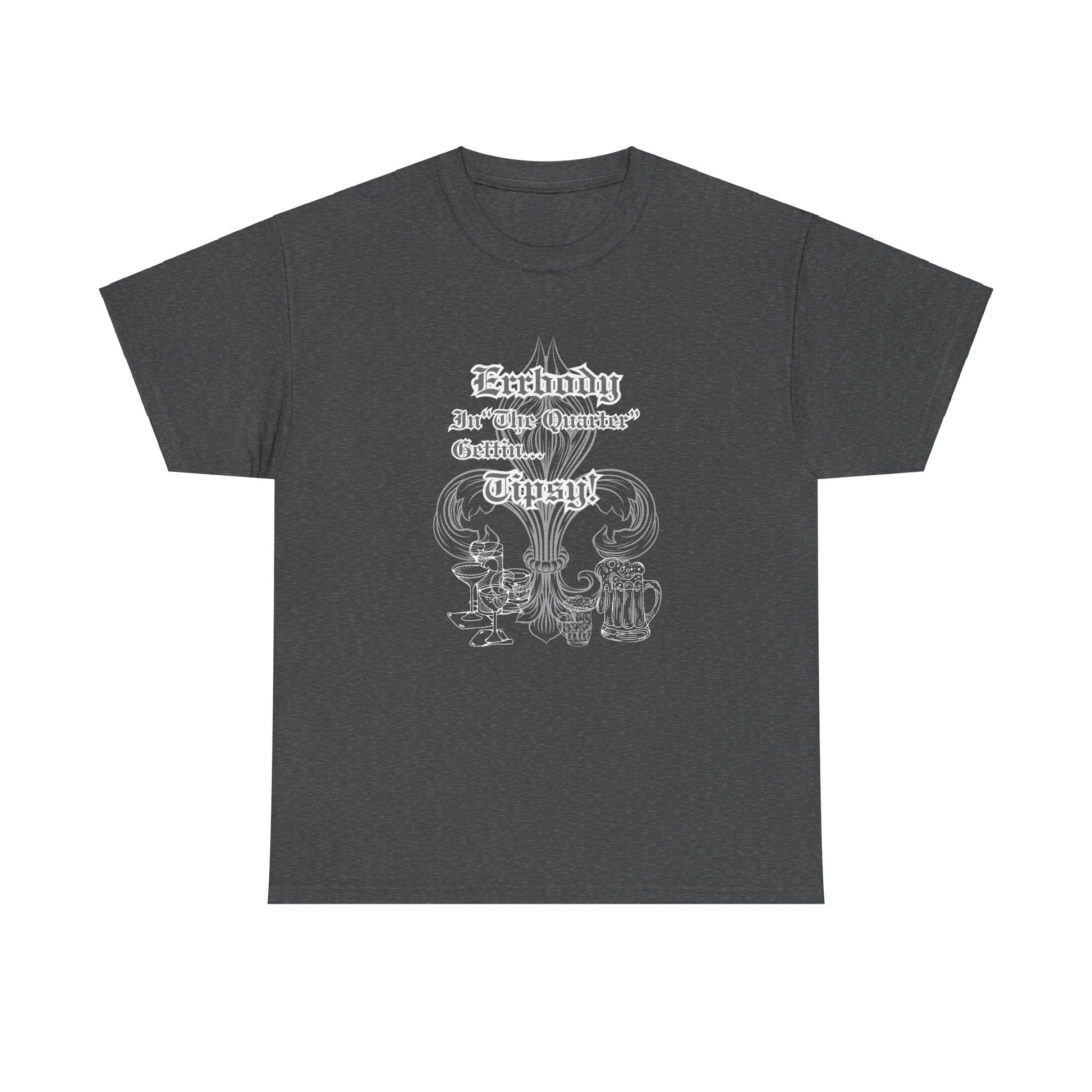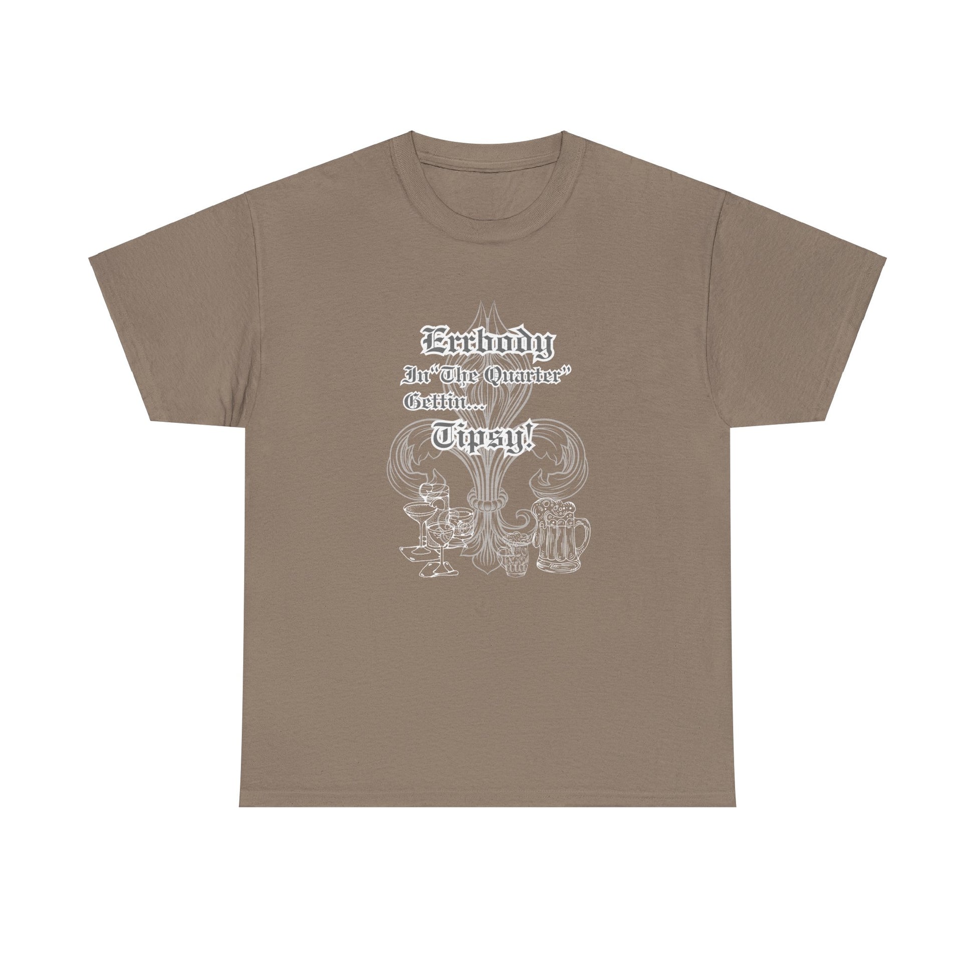 "Err Body In The Quarter Gettin Tipsy" White Text-Drinkware Des, Unisex Heavy Cotton Tee