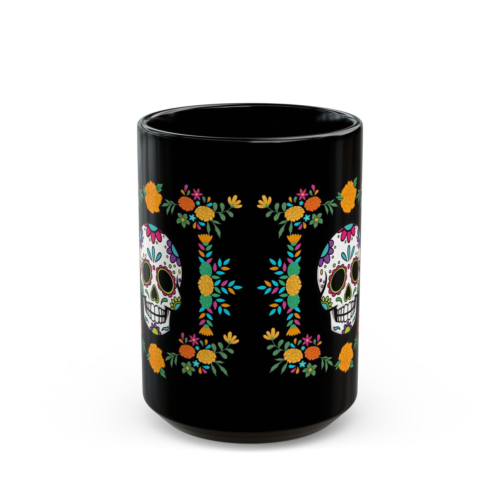 Introducing our exquisite "Sugar Skull" Black Mug, perfect for coffee lovers and tea aficionados alike. This beautifully designed mug features vibrant colors that capture attention and spark joy with every sip. Made from glossy ceramic, it not only impresses with its aesthetics but also promises durability and functionality. Ideal for daily use, the mug serves as a delightful addition to your morning routine or a thoughtful gift for friends and family. Its charming design, makes it a wonderful choice for celebrations like Día de los Muertos, birthdays, or any festive occasion. Enjoy your favorite beverages in style while embracing a vibrant, artistic vibe!