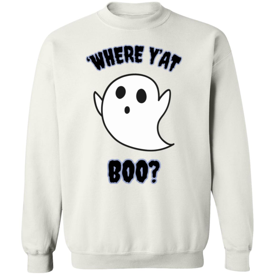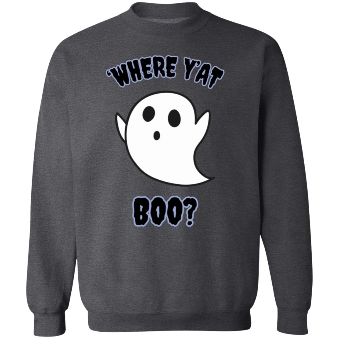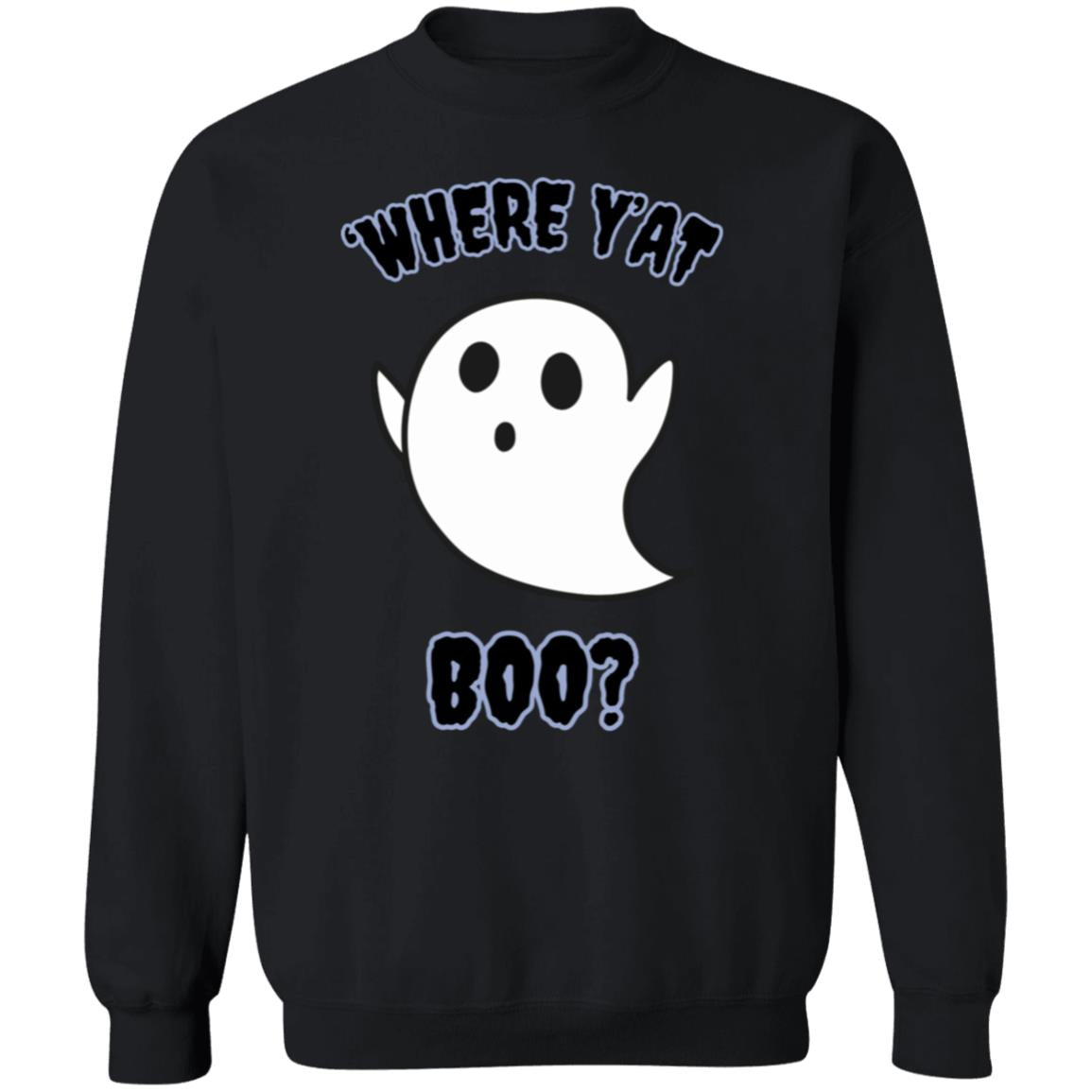 "Where Y'At Boo" Black Text, Unisex Crewneck Pullover Sweatshirt
