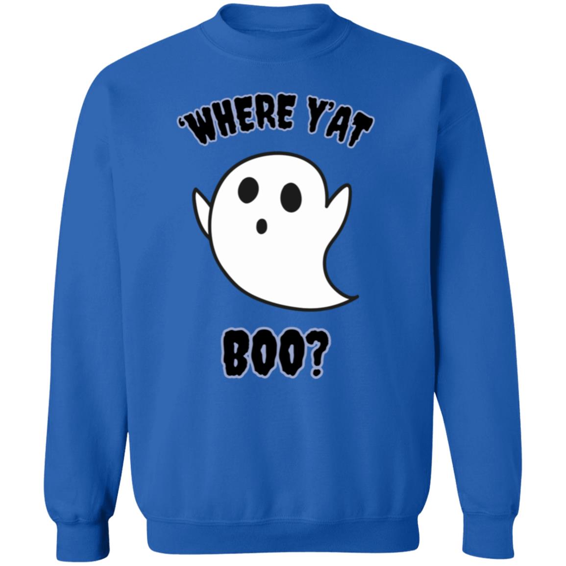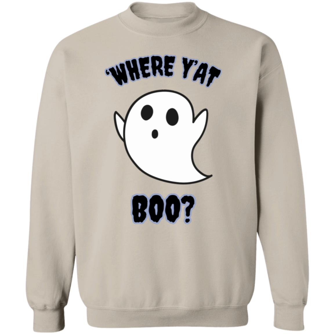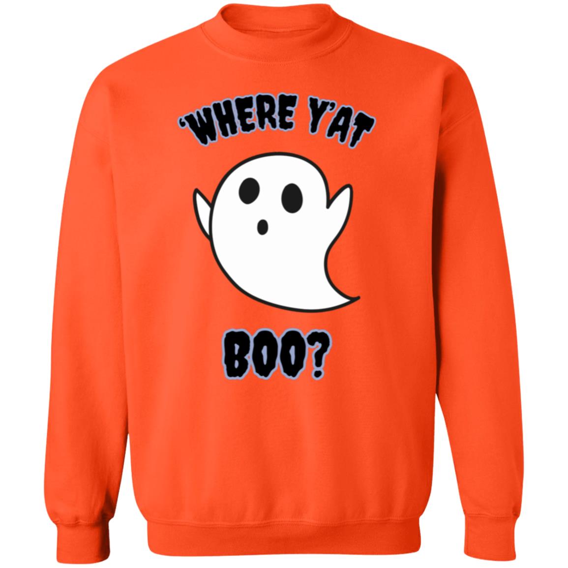 "Where Y'At Boo" Black Text, Unisex Crewneck Pullover Sweatshirt