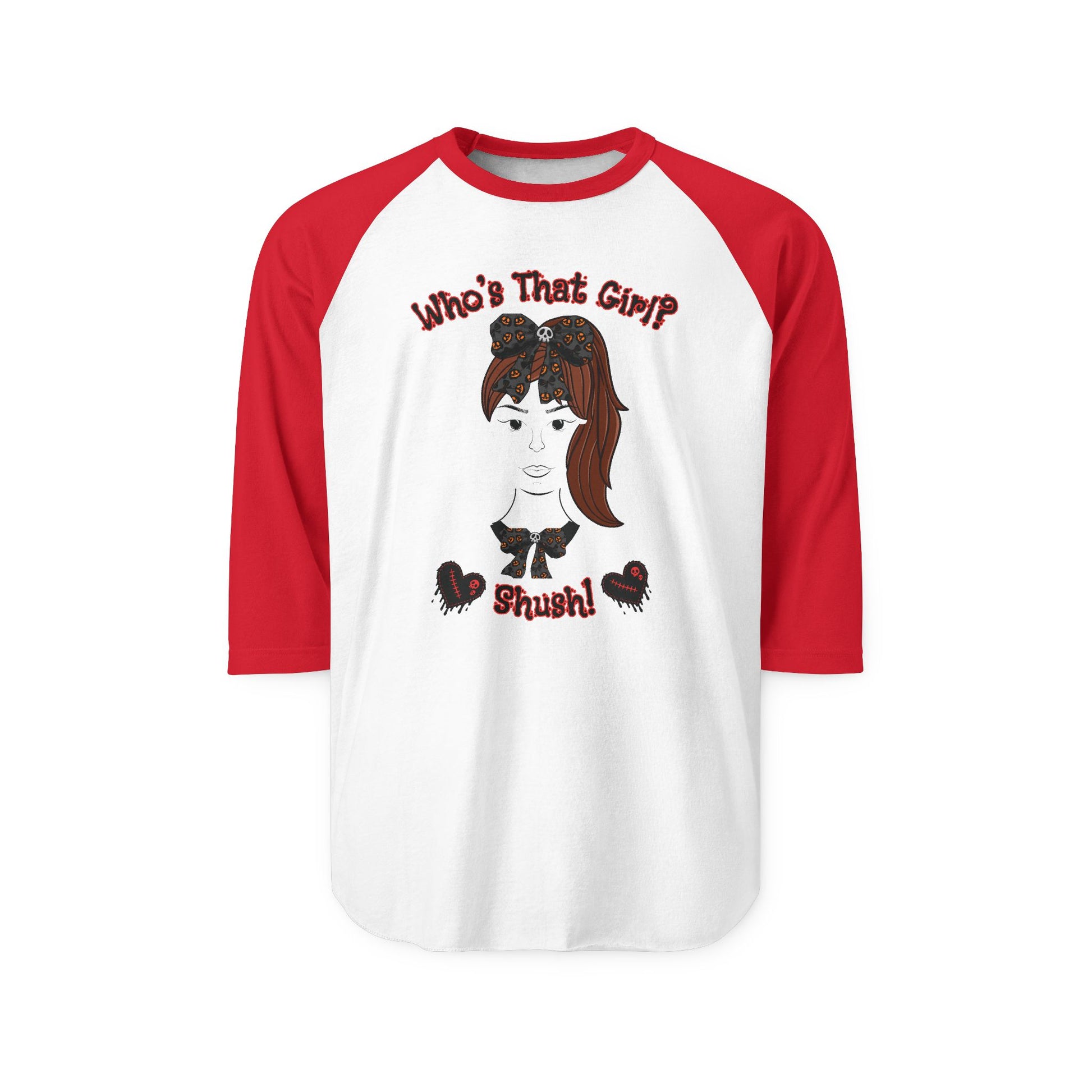 "Who's That Girl?" Unisex Three-Quarter Sleeve Raglan Shirt. A perfect "Goth" Gift!