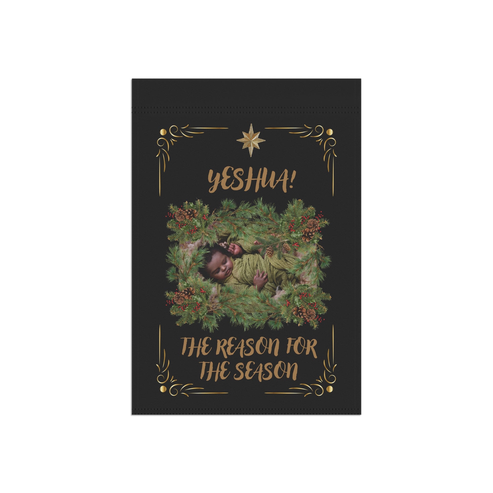 Xmas Nativity Garden Flag —"Yeshua! The Reason for the Season" Religious Christmas Garden Banner-Black