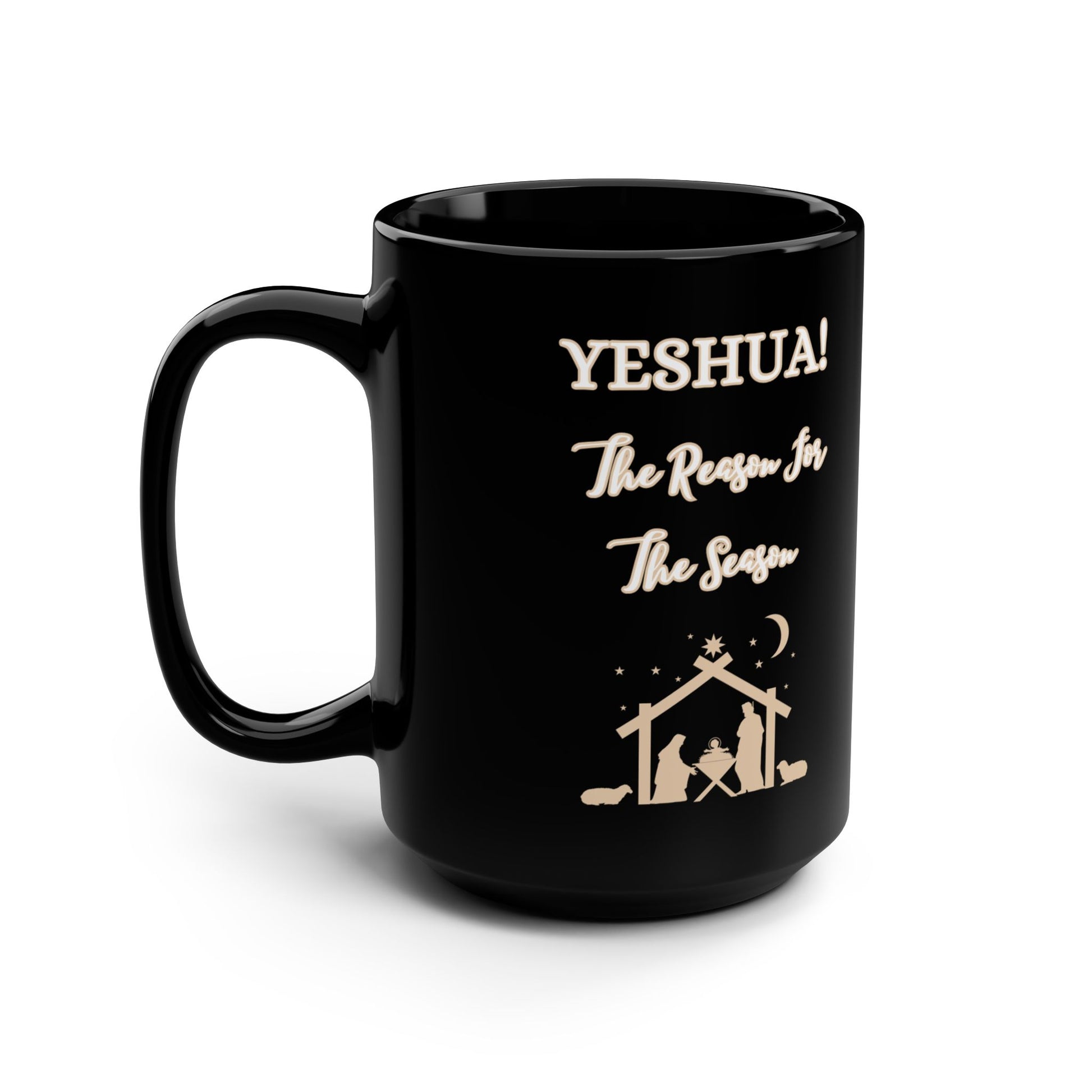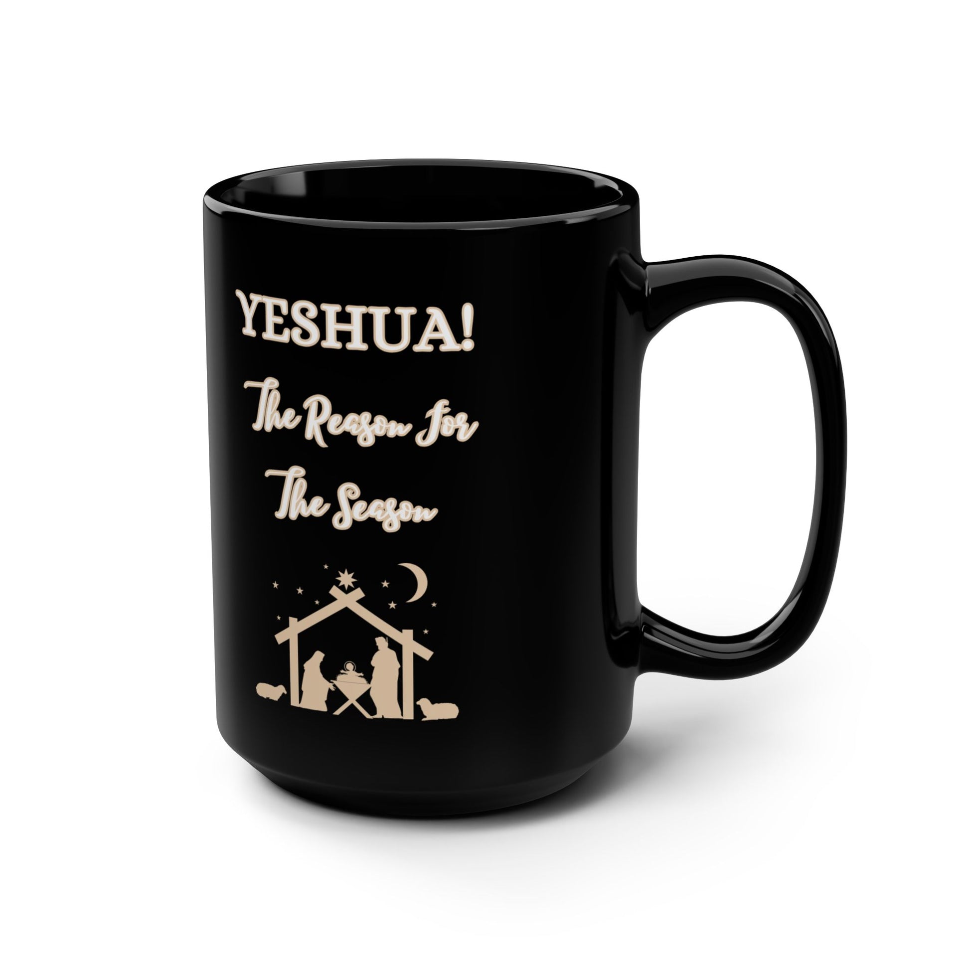 Get our "YESHUA! The Reason For The Season", custom designed, 15 oz Black Ceramic Mug and enjoy your favorite hot beverage! Our beautiful design makes this a great gift for those who would relish it. This mug is easy to grip thanks to the C-shaped handle. Happy Holidays!