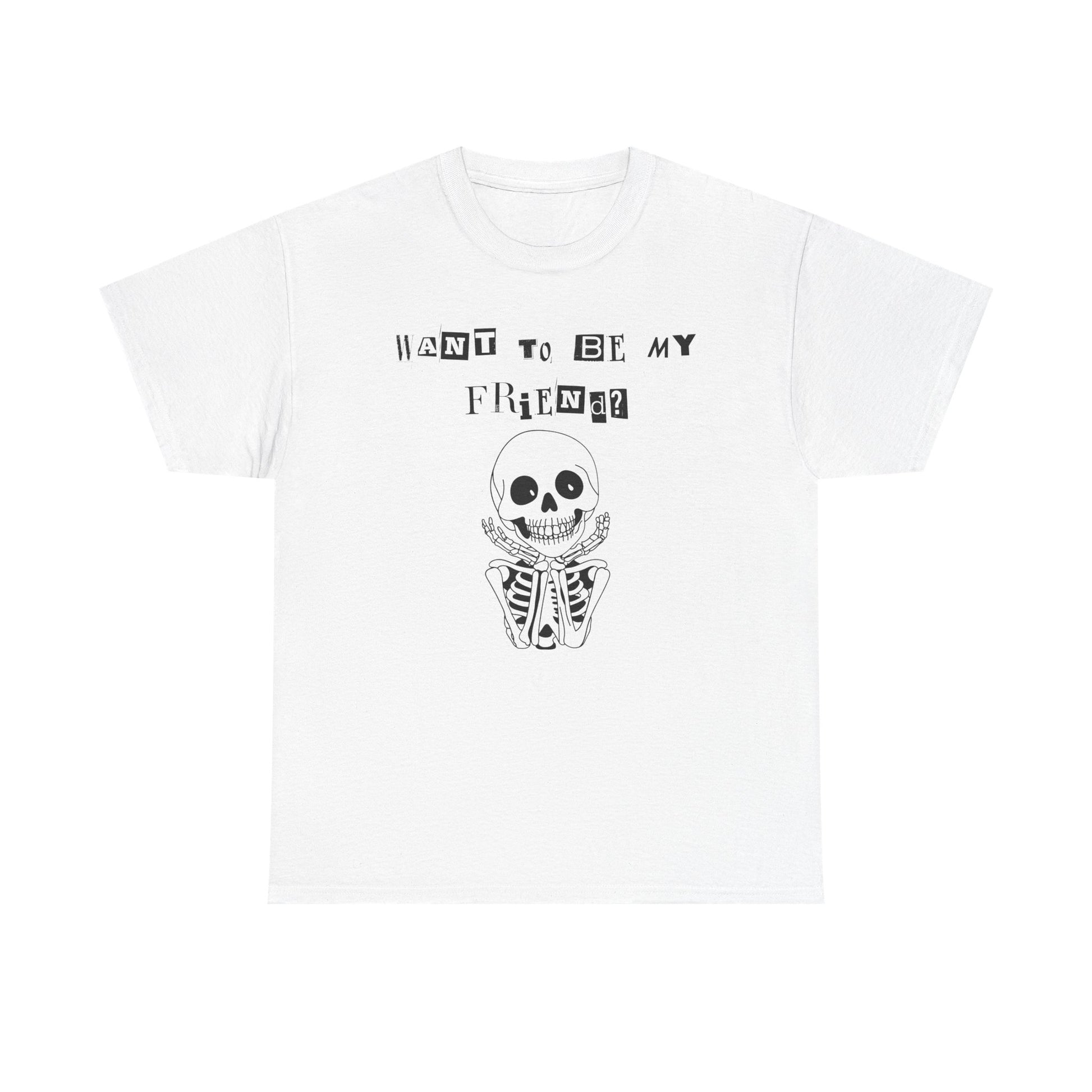 "Want To Be My Friend?" Adorable Skeleton, Unisex Tee. A Cute Halloween Gift!