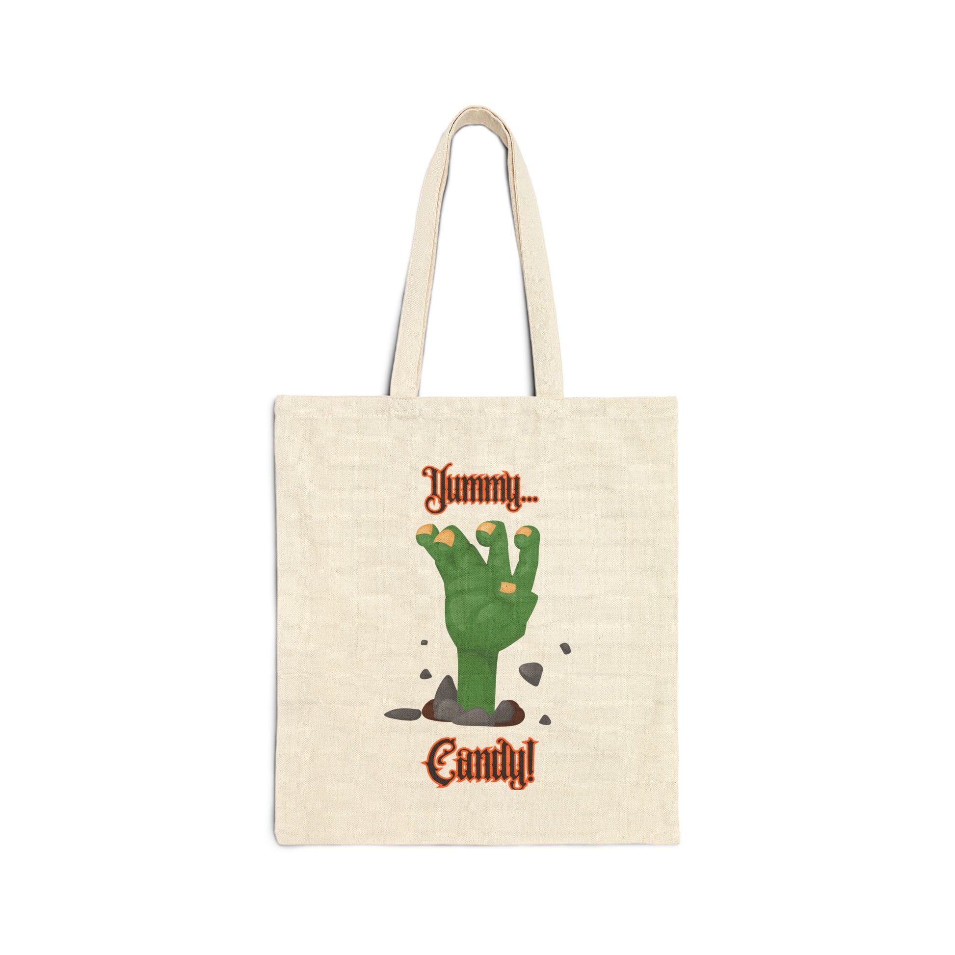 Our "Yummy Candy-Zombie Hand" cotton canvas tote bag is the perfect blend of functionality and fun. Our fun and quirky custom design, brings a playful vibe, but also a great bag for candy and treats! The durable fabric ensures it holds up well even against everyday use. Ideal for eco-conscious adults, this bag makes for a thoughtful gift during Halloween and can be used over and over again! This particular design comes in a "natural" color. Happy Halloween!